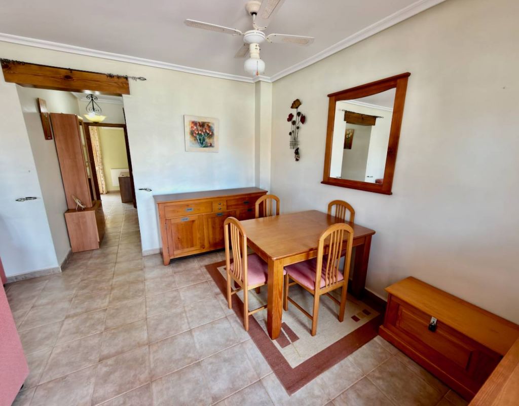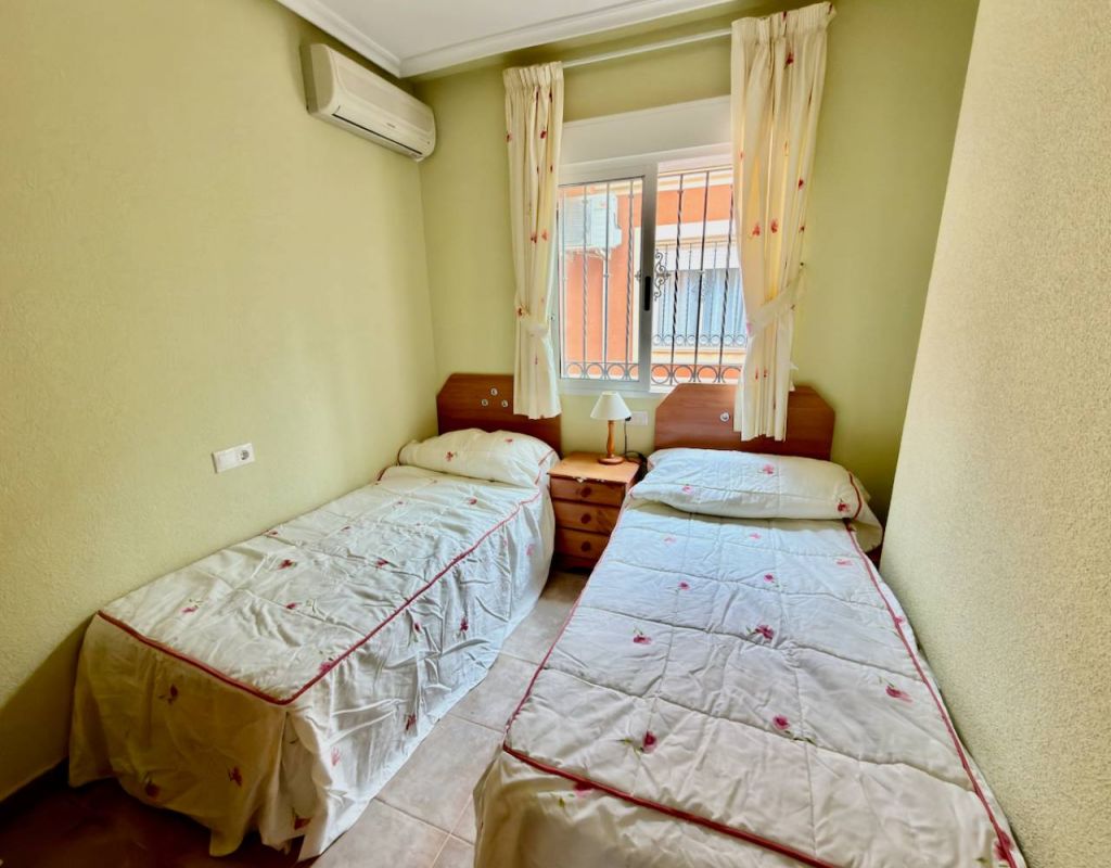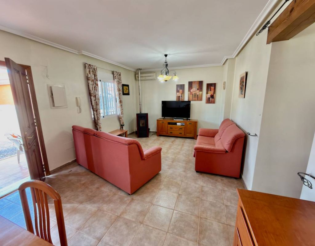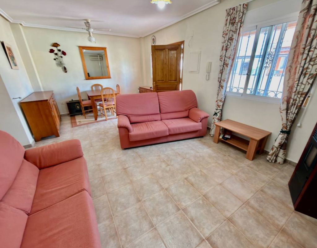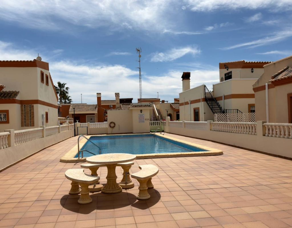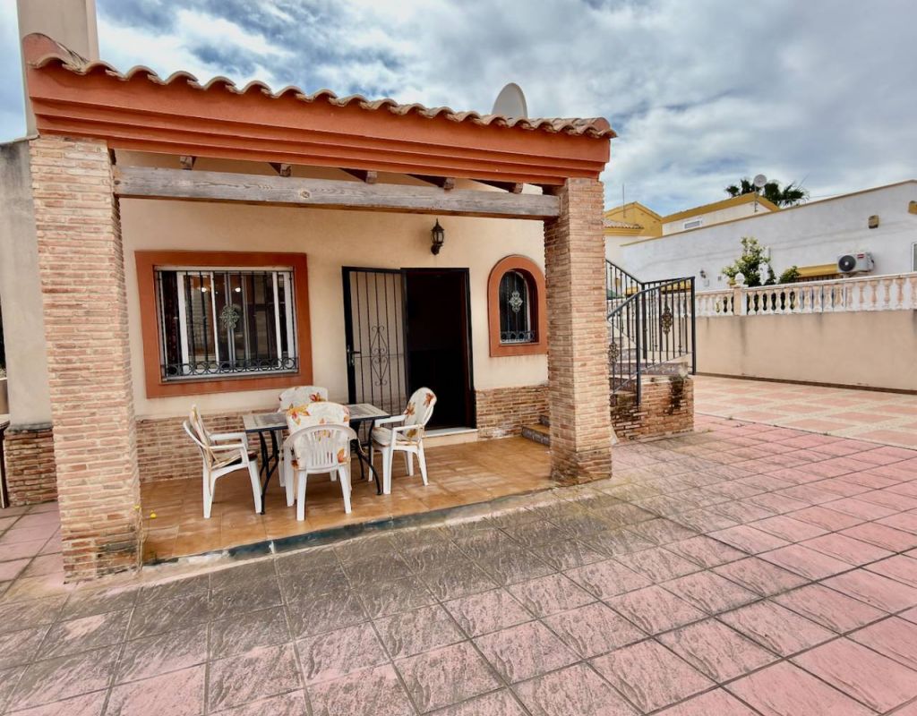 Turnkey 2-Bedroom Villa with Private Solarium Set in the desirable area of El Raso this beautifully presented villa offers a perfect balance of comfort, style, and low-maintenance Mediterranean living. Immaculately maintained and sold fully furnished, the property is ready to move straight into—ideal as a holiday home, permanent residence, or high-demand rental investment. Inside, you’ll find two well-proportioned bedrooms, a modern bathroom, and a bright open-plan living and dining space. A separate fully fitted kitchen with ample storage and a dedicated utility room adds practicality, while air conditioning and ceiling fans ensure year-round comfort. Outdoor Living The villa truly excels outdoors, set on a generous corner plot offering ample space to add a private swimming pool, enhancing both lifestyle and value. A private rooftop solarium provides the perfect setting for sunbathing, entertaining, or simply relaxing in peaceful surroundings. Residents also benefit from access to a well-maintained communal pool, ideal for cooling off during the warmer months. Key Features 2 Bedrooms | 1 BathroomFully furnished – turnkey conditionBright open-plan living spaceSeparate fully fitted kitchen + utility roomAir conditioning & ceiling fansPrivate garden & rooftop solariumAccess to communal poolOff-road parking for 2 vehicles Prime Location Ideally positioned close to all amenities, golf courses, and the coastline: Beach: 10 minutesAmenities: 10 minutesGolf: 15 minutesAirport: 30 minutes
