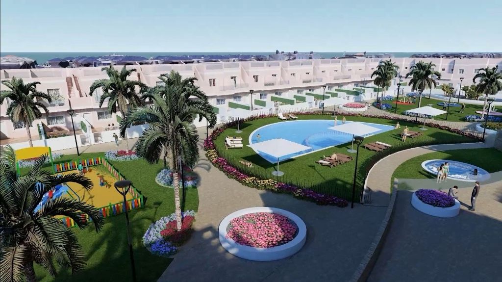New beach side apartments for sale in Torre de la Horadada, Costa Blanca, Spain.Complex with new build apartments in a popular area of Costa Blanca - Torre de la Horadada. You can choose top or ground floor apartments with 2 or 3 bedrooms, 2 bathrooms with underfloor heating, living room and kitchen with appliances included. Ground floor apartments will have a small garden area and top floor roof terrace.The complex will have underground parking, communal gardens, swimming pools.Torre de la Horadada is a typical Spanish seaside tourist resort, located on the southern Costa Blanca and less than 30 minutes from two international airports of Murcia´s San Javier and Alicante. The beaches, which are some of the cleanest around and have been awarded Blue Flag status, are complemented by a wonderful choice of shops, cafes, supermarkets, bars and restaurants.