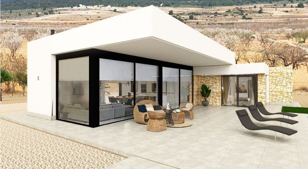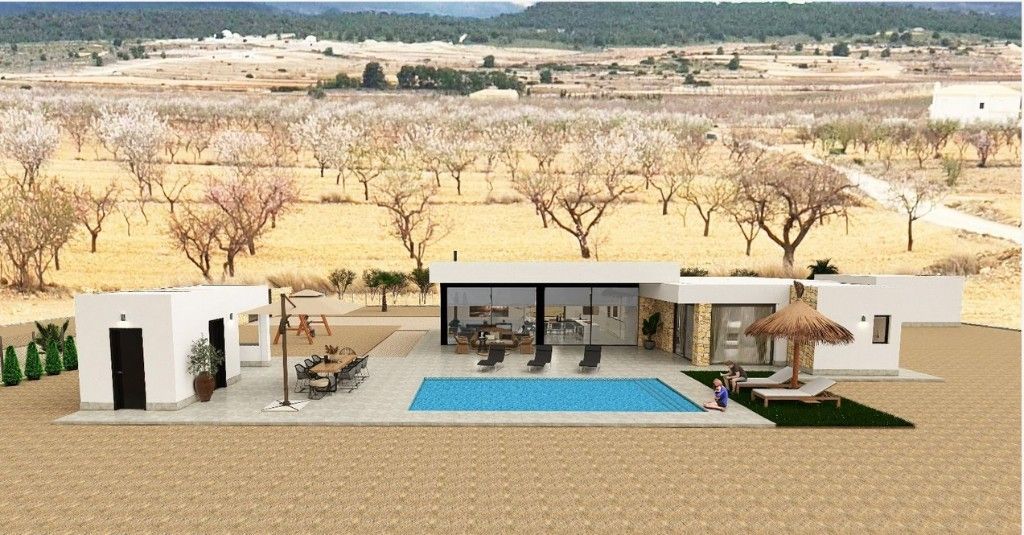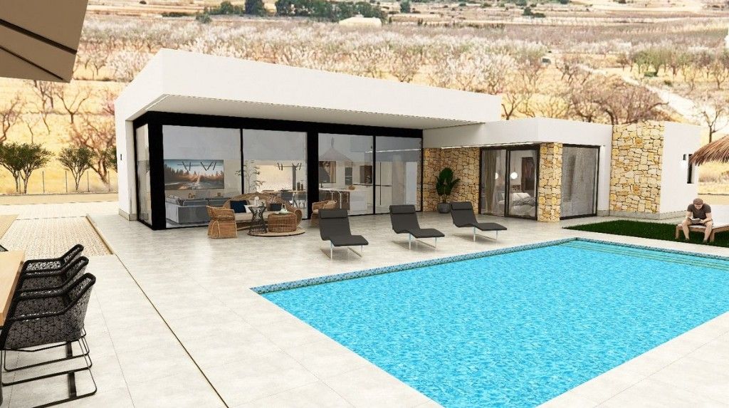 For sale new villas in PinosoNew build villas with 3 bedrooms, 3 bathrooms, large living room and kitchen, terrace, lovely outside garden 14105 m2 with private pool.The construction works is carried out using only the highest quality materials and finishing works such as: double glazed aluminium windows, shower plates in the bathrooms, top quality porcelain used for the floor and interiors, air conditioning pre-installation and much more extras.New villas - located a few kilometers from the popular city in Costa Blanca - Alicante. Nearby you will find shops, supermarkets, banks, restaurants, schools. But if you want entertainment, then just a few minutes away golf, casinos, shopping malls, water parks, discos and much more great entertainment. Only 35 km from Alicante airport. Good choice to live in Spain all year around.