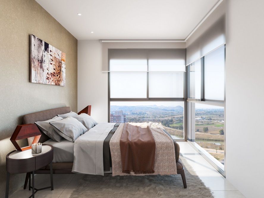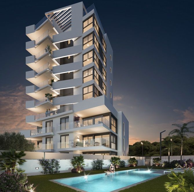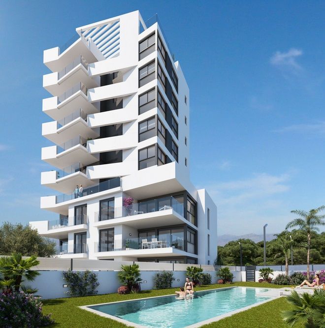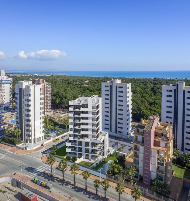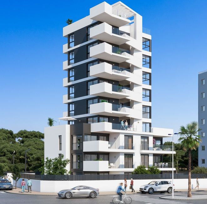 For sale new apartments in Guardamar del SeguraNew building consisting of twelve floors. The complex has large common garden areas and a community pool, parking spaces in the basement. All apartments are designed in a minimalist style and in accordance to high quality standards. The apartments consist of 3 bedrooms and 2 bathrooms, open kitchen, a spacious living room and terrace.The last level apartments have a private terrace and private rooftop solarium.Guardamar del Segura is a beautiful Spanish town located on the southern part of the Costa Blanca, in the province. It is famous for a large park with palm and pine trees, sandy beaches and dunes. Here you will find very well-developed infrastructure, excellent climate and a friendly atmosphere.The magnificent sandy beaches of dunes, green areas, the promenade, where you will find a lot of bars and cafes, a sports complex, a yacht harbor, schools, medicales centers, supermarkets, discos - all this is located in Guardamar del Segura. In just 30-40 minutes by car from Murcia, Alicante or Cartagena.