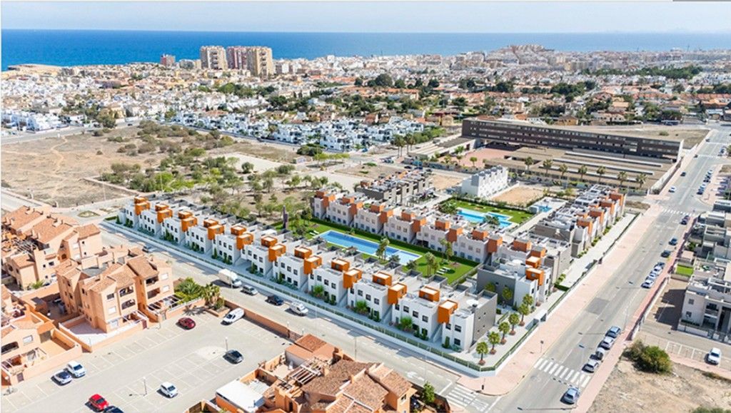 New build apartments for sale in Torrevieja.A complex of 44 apartments with large communal garden areas, communal pool. The residential complex is located next to all kinds of services and about 500 meters from Los Locos beach.The construction of the complex is carried out on two levels. Apartments with 3 bedrooms and 2 bathrooms, large living room, fitted kitchen and terrace. Ground floors apartments have a garden and upper floors have a solarium. All homes have a garage included in the price.Also within a walking distance of a large selection of restaurants, bars, water attractions and sports. There are shops, supermarkets, banks, 5 minutes drive from the center of Torrevieja. It is a popular resort where tourists come every year, not only from Spain but also from all over the Europe. Nearby are the unique lakes of Torrevieja, a nature conservation area and places for recreation and sports.