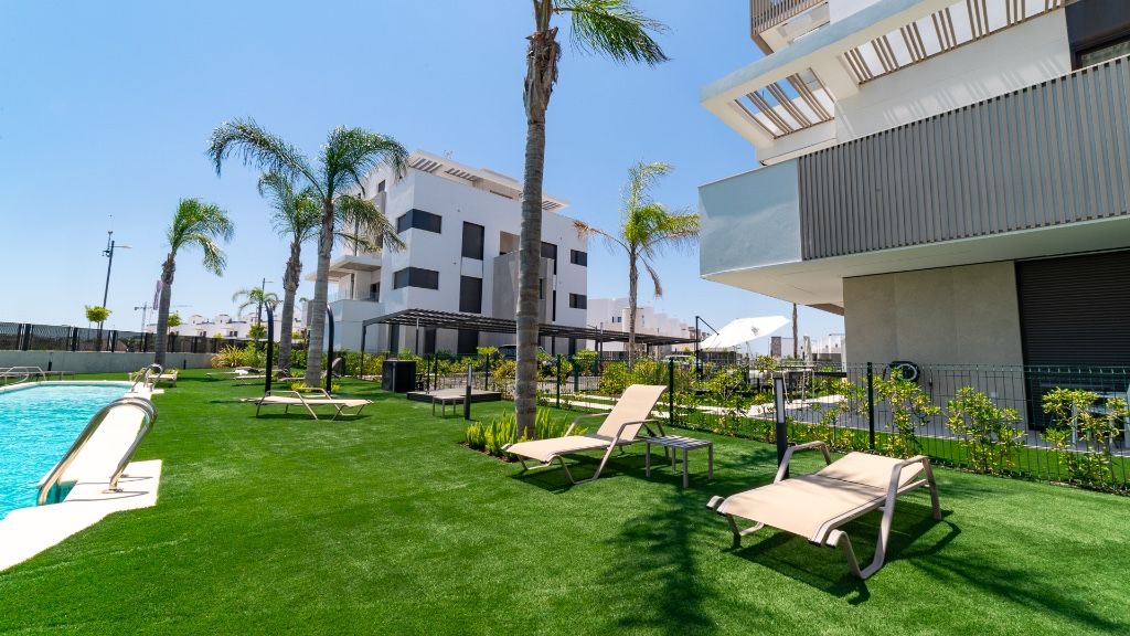 Santa Rosalia Lake and Life Resort Murcia is a new and secure gated urban resort. The Santa Rosalia Murcia resort boasts a 16,000 m² Crystal Lagoon, which includes an 8,000 m² beach area, an artificial sea with natural sand and saltwater, as well as a beach club, restaurant, gym, shop, and bar.The amenities also include mini-golf, walking trails, paddleboarding, and kayaking.The apartment is located within the resort and also features a gated residence with a swimming pools. Residents of our complex have full access to all resort amenities, which are included in the community fees.There is also the community heated pool..The apartment features two bedrooms and two bathrooms, a terrace, a living room with a fully equipped open-plan kitchen. The apartment comes fully furnished and equipped with all necessary appliances.