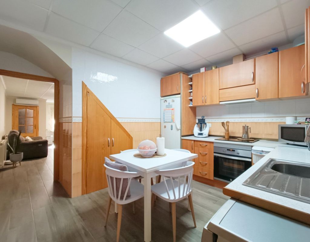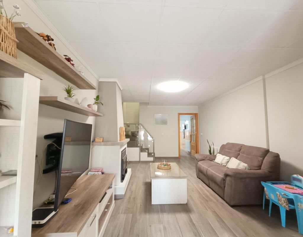 Imagine stepping outside your home and having the bakery, market, bars, and all village services just a few minutes away, without needing a car. This townhouse in the very centre of Hondon de los Frailes offers exactly that: comfort, village life, and space for the whole family.The 5 bedroom village house is distributed over three floors, combining spaciousness, functionality, and cozy details.On the ground floor, we enter a small entrance hall leading to a large living-dining room with a fireplace and air conditioning. From here, you have access to the kitchen , laundry room, a patio, a full bathroom and a downstairs bedroom (or office). The entire house benefits from central heating and solar panels, providing comfort and efficiency all year round.The second floor features three bedrooms and a full bathroom. One bedroom has access to a private patio, and the bathroom also opens to an outdoor patio, providing natural light and ventilation.On the third floor, there is a loft-style room, currently used as storage, with multiple possibilities such as a 5th bedroom. From here, you access the roof solarium, at the very top of the house, with views of the village's main street and the installed solar panels: a perfect space to relax, sunbathe, or simply enjoy the village atmosphere from above.A charming home, well laid out, with all modern comforts and all services within reach, perfect for those seeking the authentic lifestyle of Hondón de los Frailes.