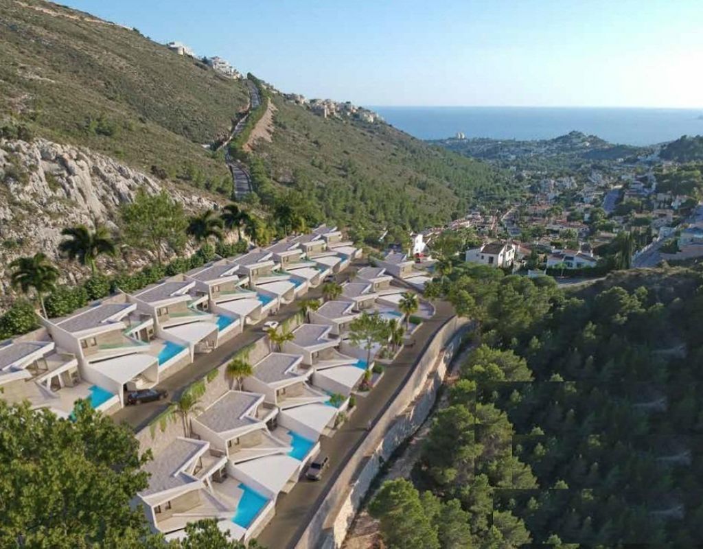Luxury New Build Villas with Sea Views in Benitachell Exclusive Villas in Golden Valley, Poble Nou de Benitachell Discover this outstanding new build development of 16 independent villas with stunning sea views, located in the prestigious Golden Valley urbanization in Poble Nou de Benitachell, Alicante. This privileged area sits between the popular coastal towns of Moraira and Javea, offering a peaceful residential environment surrounded by nature, yet close to beaches, restaurants and essential services. The elevated position guarantees panoramic Mediterranean views and a tranquil lifestyle on the Costa Blanca. Modern Architecture and Elegant Design These contemporary villas showcase avant garde architecture combined with spacious interiors filled with natural light. Each home has been carefully designed to deliver comfort, privacy and functionality, blending indoor and outdoor living seamlessly. Clean lines, large windows and open plan spaces create an atmosphere of light, sophistication and Mediterranean charm. Spacious Layouts with Private Gardens and Pools Each villa offers approximately 290 m2 built on private plots of over 300 m2. Homes feature 3 or 4 bedrooms, with en suite bathrooms, plus a guest toilet. Distributed over three levels, the layout includes a basement with a private garage for two cars and, in some units, additional space for a gym, extra bedroom, laundry room or storage. The ground floor hosts the open plan living and dining area with a fully equipped kitchen, direct access to the terrace and private swimming pool, one bedroom with en suite bathroom and a guest toilet. The upper floor includes two additional bedrooms with en suite bathrooms and a large open terrace ideal for enjoying sea views. High Quality Features and Energy Efficiency All villas include a private swimming pool, barbecue area and chill out zone. Specifications include electric shutters, an armored entrance door, fully fitted kitchens with Bosch appliances, aerothermal system for domestic hot water, and fully installed ducted air conditioning. The development boasts an A energy rating, ensuring efficiency, comfort and reduced energy consumption. Prime Location on the Costa Blanca Poble Nou de Benitachell is a charming town known for its authentic Spanish atmosphere, beautiful countryside and proximity to some of the best beaches on the Costa Blanca. The area offers supermarkets, restaurants, medical services and international schools nearby. Key distances: Moraira beach 6 km Javea beach 8 km Benitachell town center 2 km La Sella Golf 12 km Marina de Moraira 7 km Alicante Airport 95 km Valencia Airport 120 km Your Dream Home with Sea Views These exclusive new build villas in Golden Valley combine luxury, design and a privileged location with breathtaking sea views. Contact us today to arrange a private viewing and secure your new Mediterranean home in Benitachell.