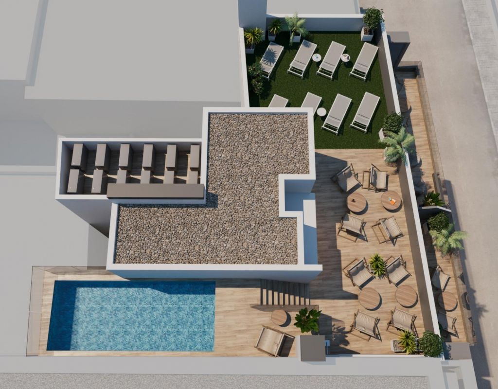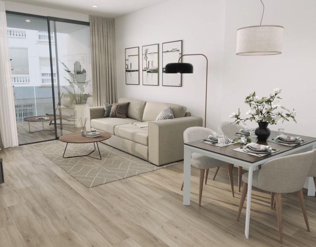 Newly built apartments in Torrevieja, just 600 metres from Playa del Cura beach Prime location in the heart of Torrevieja Discover these brand new apartments and penthouses in one of the most sought-after areas of Torrevieja, just 600 metres from Playa del Cura beach and 400 metres from the seafront promenade. Located in the city centre, this lively neighbourhood offers all essential amenities within walking distance, including supermarkets, shops, restaurants, cafés and public transport. Torrevieja is a well-known coastal town on the Costa Blanca, famous for its mild Mediterranean climate, lively atmosphere and year-round seaside lifestyle. Modern apartments with spacious layouts This exclusive new development consists of only 14 apartments and penthouses, including studios and 1 or 2-bedroom properties, designed to offer comfort, functionality and contemporary style. All homes feature an open-plan kitchen connected to the living-dining room, equipped with appliances, creating bright and welcoming interiors. The bedrooms have fitted wardrobes and the bathrooms are fully equipped with furniture, mirrors, underfloor heating and shower screens. Quality finishes and energy-efficient features The apartments are built with high-quality materials and a strong focus on energy efficiency. The exterior aluminium joinery includes thermal break technology and double glazing for thermal and acoustic insulation. Motorised blinds add comfort and security. Each home has pre-installation for air conditioning and ducted heating, reinforced entrance doors, a lighting pack and white lacquered interior doors. Hot water is produced by an aerothermal system, reducing energy consumption and improving sustainability. Roof-top solarium with communal swimming pool Residents can enjoy an exclusive roof-top solarium with communal swimming pool, barbecue, sauna and sunbathing area with sun loungers, accessible by lift or stairs. This private area is perfect for relaxing, sunbathing and enjoying panoramic views of the city. It offers a peaceful retreat above the bustling streets of Torrevieja and adds significant value to the development. Lifestyle and surroundings of Torrevieja Torrevieja is known for its extensive coastline, sandy beaches and iconic salt flats. The Lagunas de La Mata y Torrevieja Natural Park is approximately 5 km away and offers hiking trails and unique landscapes. Several golf courses, such as Villamartin Golf and Las Colinas Golf, are between 12 and 18 km away. The marina and port of Torrevieja are approximately 1 km away. Alicante Airport is approximately 45 km away and Murcia International Airport is approximately 65 km away, both with excellent European connections. Your home on the coast awaits Don't miss this opportunity to purchase a modern, newly built apartment near the beach in Torrevieja. Contact us today for more information or to arrange a private viewing.