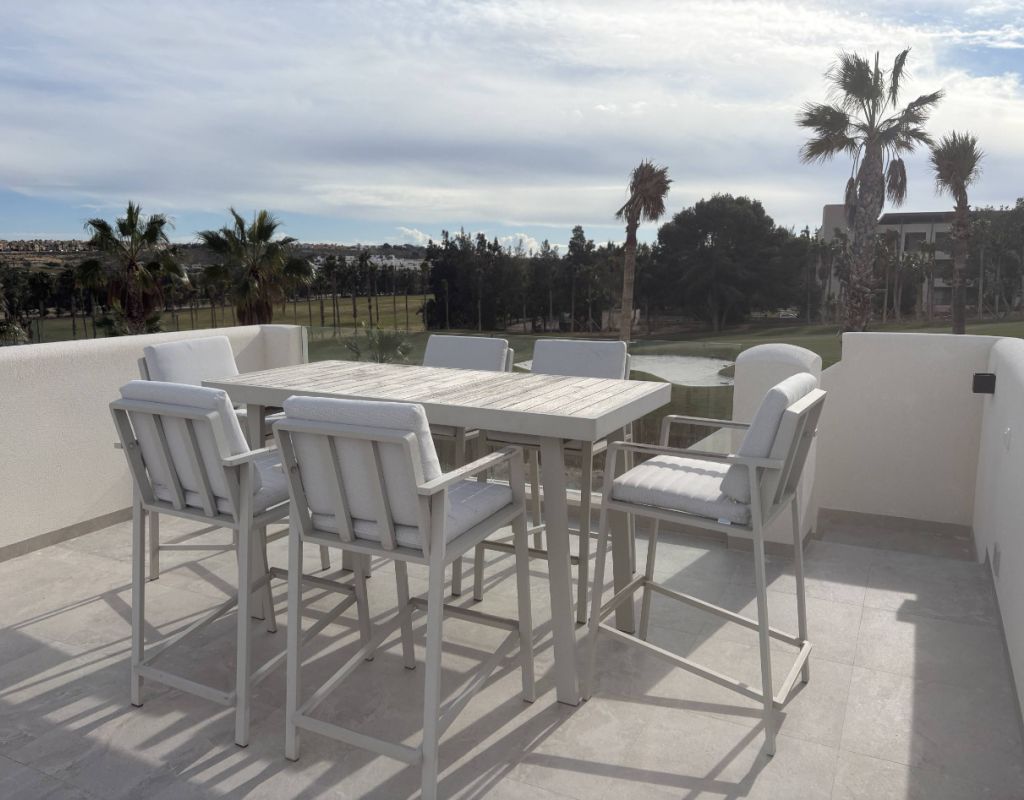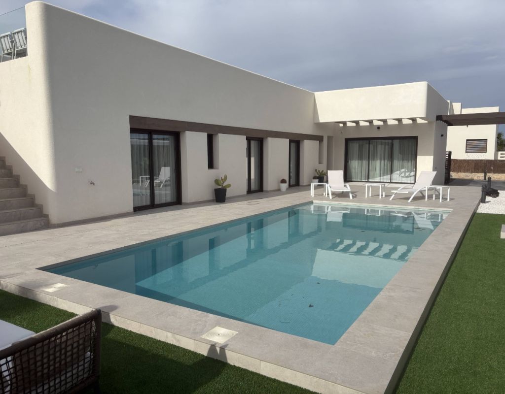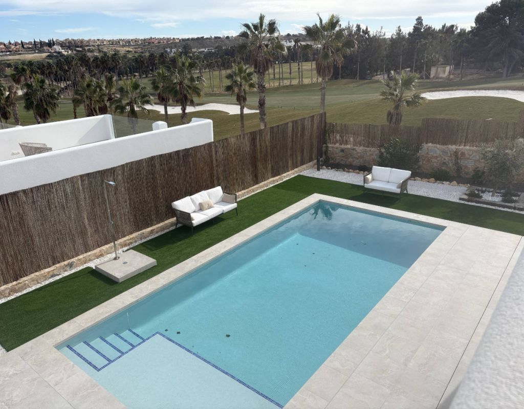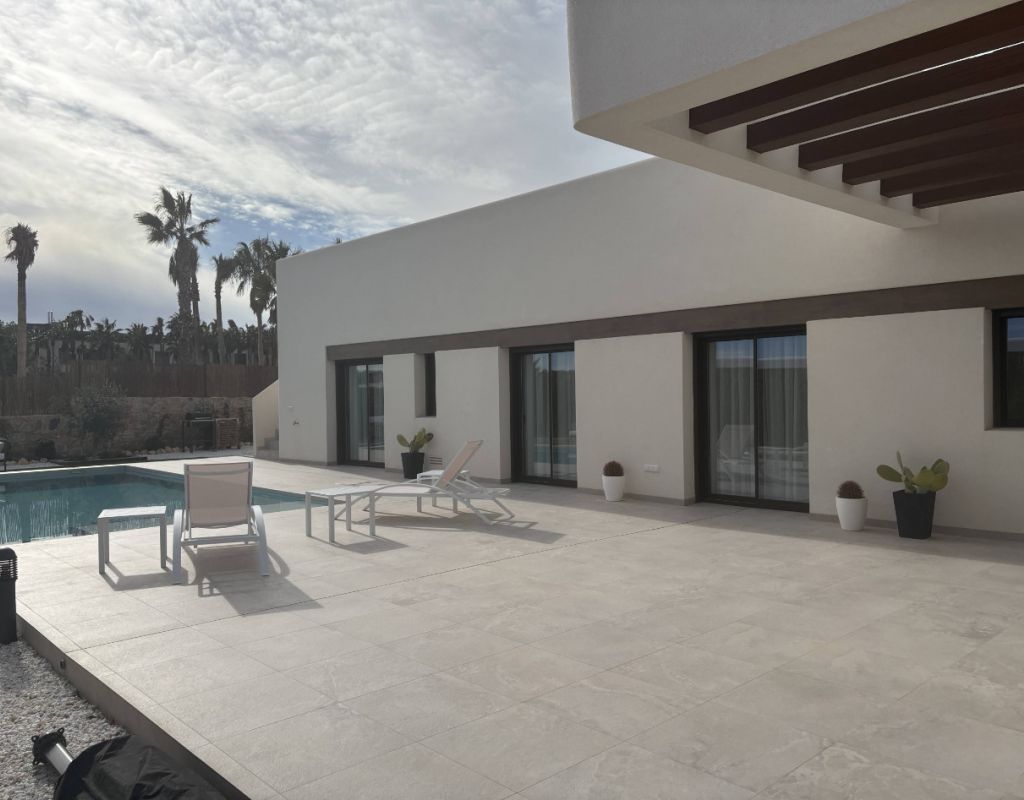 This NEW BUILD Villa is now KEY READY to move in. Finished October 2025 and in a prime first line golf position! EXTRAS: -The Villa has spectacular views, south facing orientation -There are 3 bedrooms and 2 bathrooms, all on 1 level -Large plot and private pool, huge solarium with surrounding views towards the golf and Hotel La Finca Golf -The best new build finishes exterior and interior -Secured gated community Please contact us for more information or a viewing