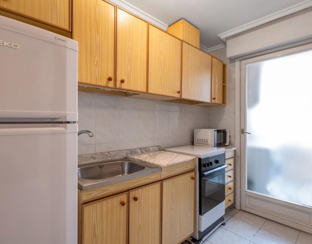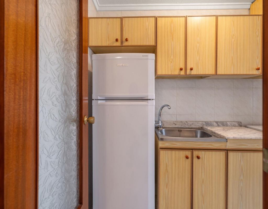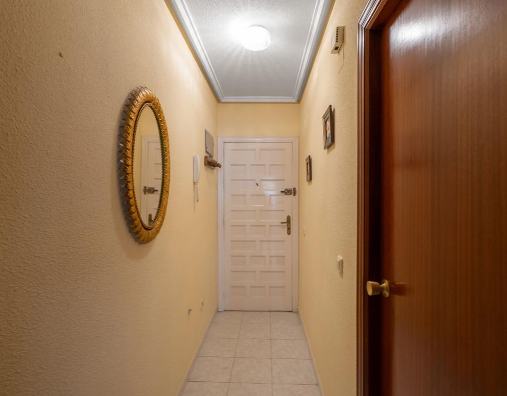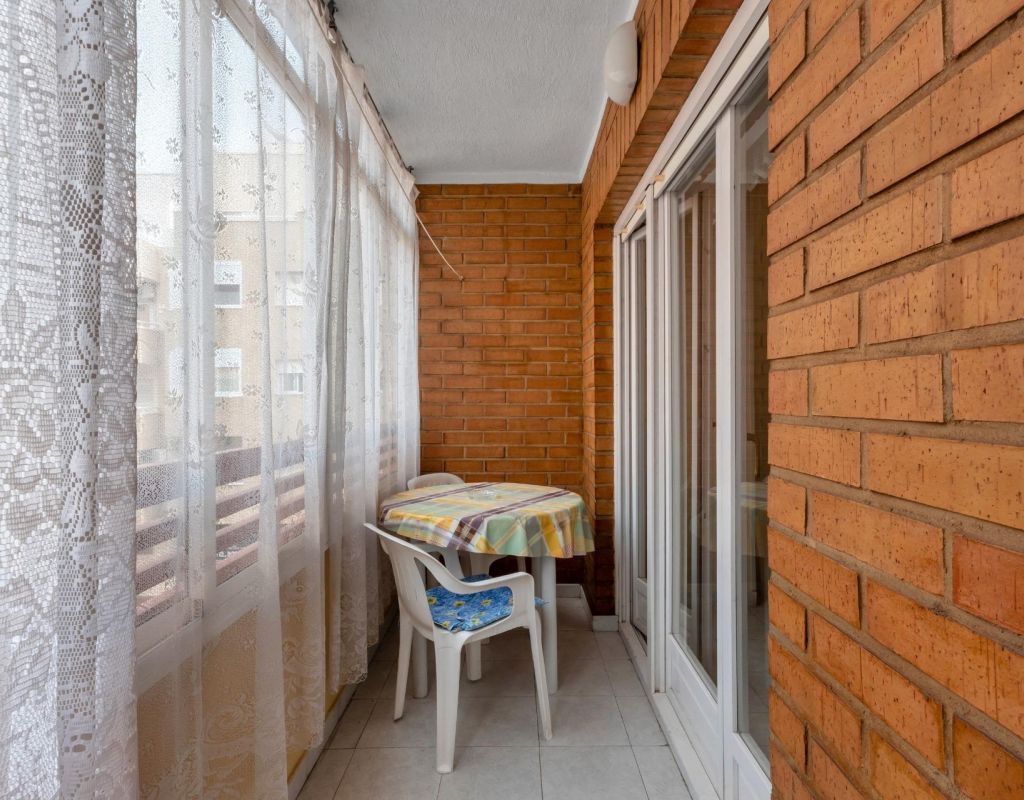 We present this second-floor apartment located in Torrevieja, in an area surrounded by shops and services, ideal for everyday living.~~The property features a spacious bedroom with en-suite bathroom, offering comfort and privacy. It has an independent kitchen with a utility room, ideal for laundry and storage.~~From the living room, there is access to a balcony with direct views of the communal swimming pool, a pleasant space to enjoy the Mediterranean climate. The property is part of a complex with a communal pool.~~The beach is just 1.5 km away, easily reachable by car or on foot.~~An ideal property as a second home, holiday apartment or investment in Torrevieja.