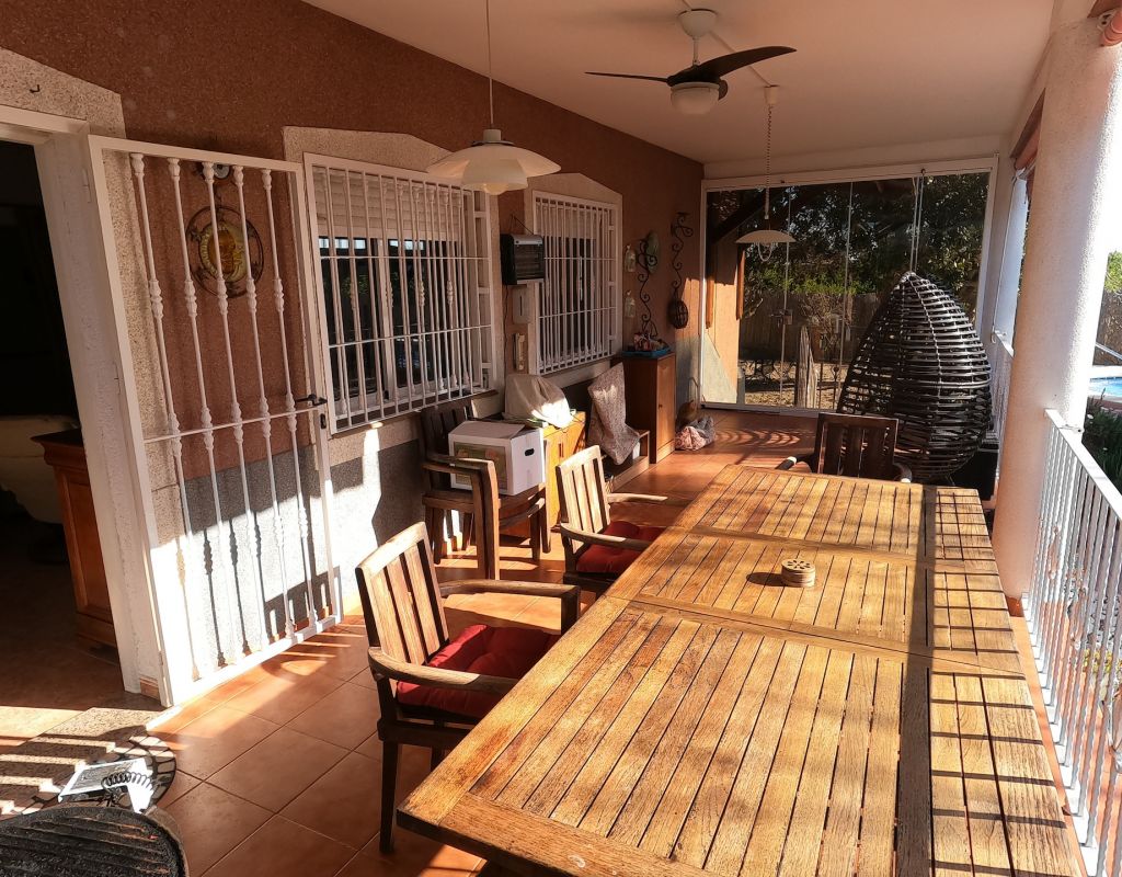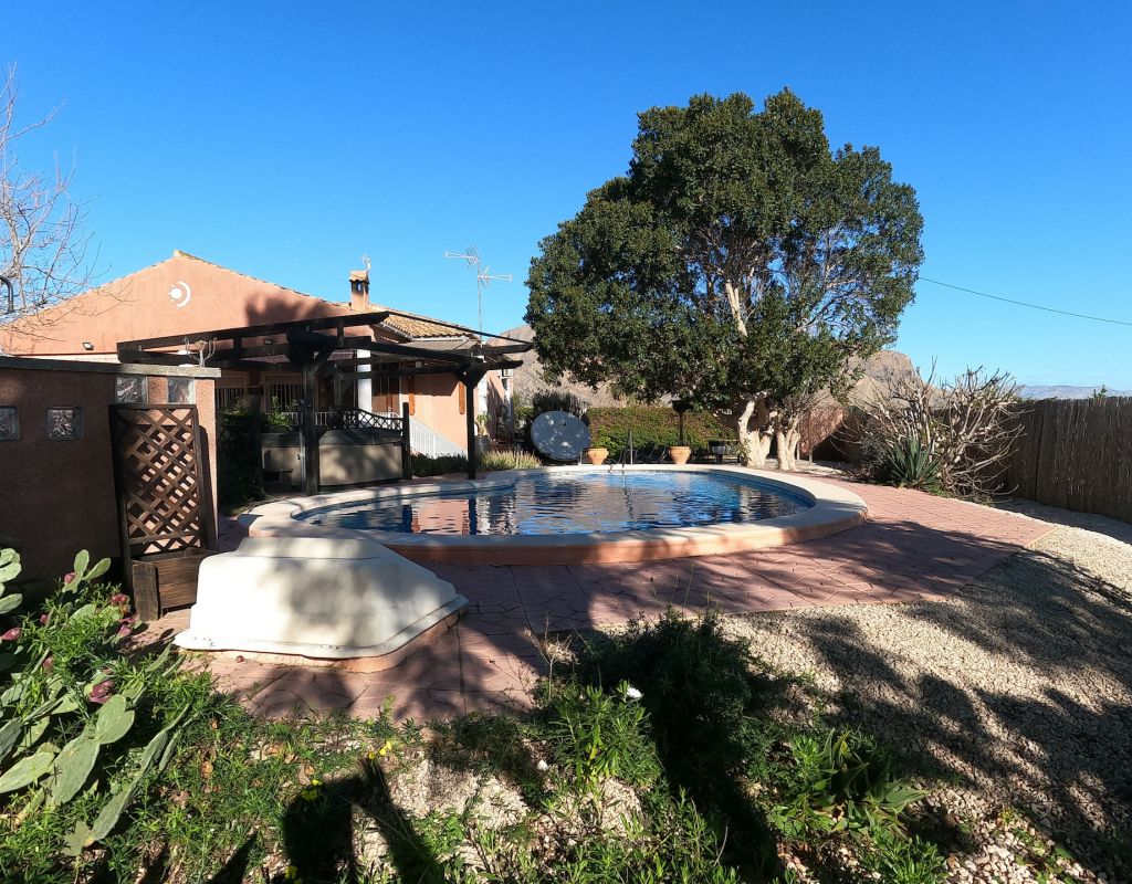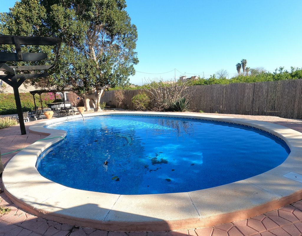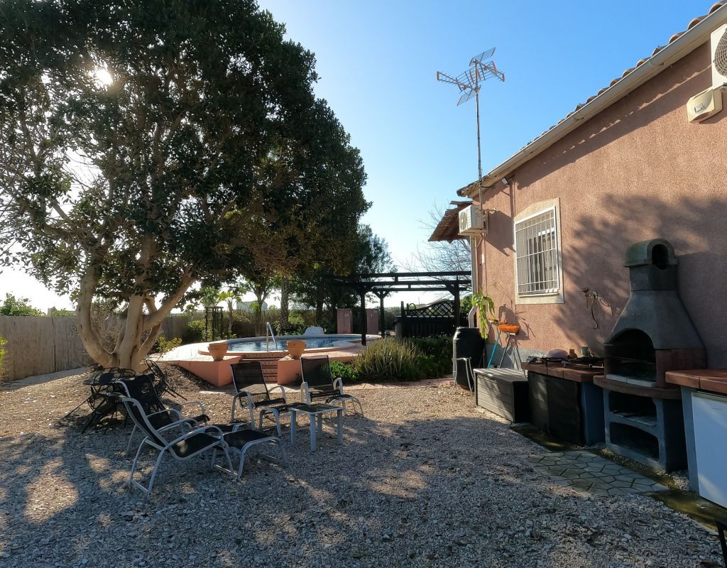 For sale: Charming country house located in the peaceful area of La Campaneta, Orihuela. This extremely well-maintained property offers an internal space of 110 m2 and sits on a large plot, providing plenty of outdoor space for gardening, entertaining, or simply relaxing in the fresh air. Inside, the home features three spacious bedrooms and two modern bathrooms, making it ideal for families or those seeking extra comfort. The property comes fully furnished, so you can move in with ease and convenience. The bright living area and functional kitchen are designed for comfortable everyday living. Outside: there is a covered 25m2 veranda with views over the beautiful garden and pool There are several seating areas around the property making it possible to move from shaded into sunny areas. There is second terrace at the front of the property. Extra's include: Fully furnished, air conditioning, Glass curtains on terrace, private pool, a Hot tub, heated towel rails in bathrooms, outside kitchen, storage, mains water and electric, fully legal Orihuela is known for its picturesque landscapes and tranquil environment. The area blends a quaint rural charm with convenient local amenities, offering a relaxing lifestyle while remaining close to essential services and attractions. This appealing country house is offered by Orange Casas. Contact us today to arrange a viewing or for more information.