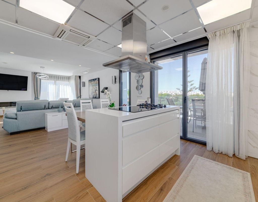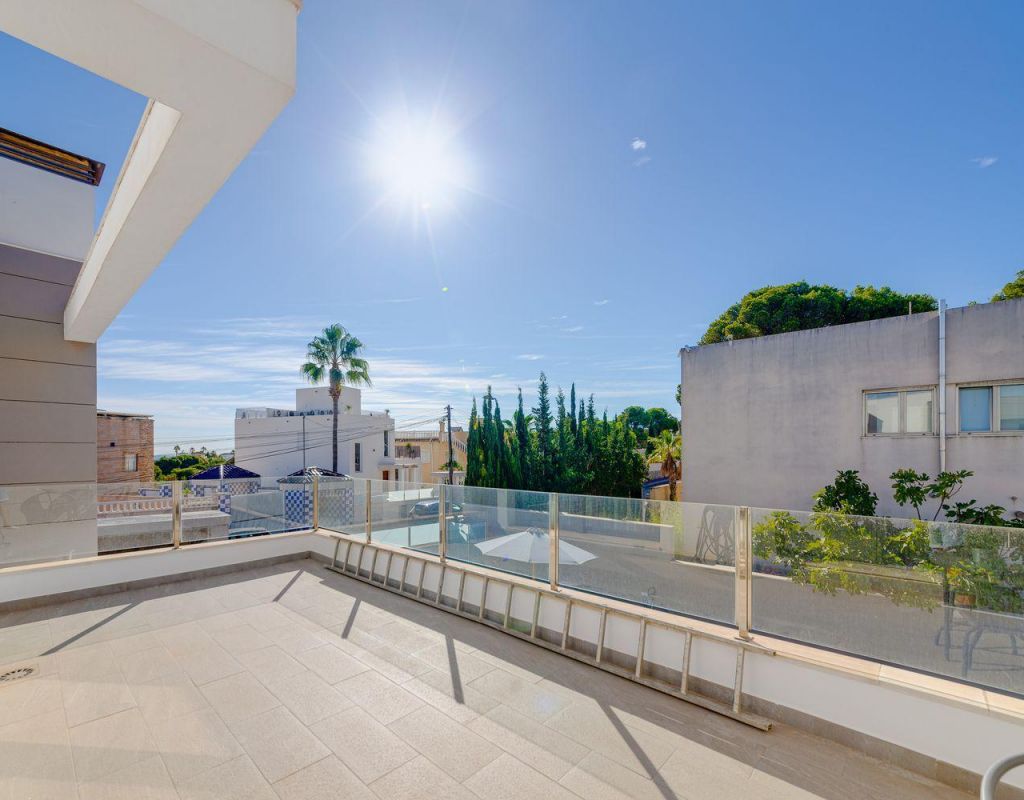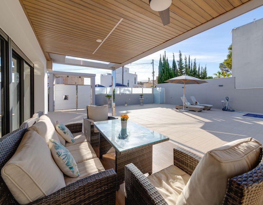 A contemporary gem designed for those who seek excellence, absolute comfort, and impeccable aesthetics. This unique villa combines cutting-edge technology, spaciousness, and top-tier finishes in one of the most prestigious areas of Torrevieja.Key features 3 bedrooms 4 bathrooms 461 m² built area 790 m² plot Private pool with waterfall Hammam in the master bathroom Private gym Parking space for two vehicles Smart home system Eighteen solar panels Underfloor heating throughout the property Fully equipped kitchen with premium appliances Monthly SUMA tax €90On the ground floor, there is a spacious social area with a fireplace, a separate living room, and a surround sound system. Underfloor heating ensures comfort all year round. The fully equipped kitchen includes high-end appliances. All spaces are integrated into the homes smart system, and the bathrooms feature built-in radios and NOKEN finishes.The upper floor offers four exceptional bedrooms. The master suite includes an en-suite bathroom with a private hammam, while the additional bedrooms each have their own bathroom and built-in wardrobes. A large elevated terrace with a shower provides the perfect spot to relax in the sun.The basement houses a gym, a multi-purpose room ideal for a home cinema, storage rooms, and technical areas.Outside, the pool with waterfall and its terrace area invite you to enjoy the Mediterranean lifestyle.5 minutes from La Zenia Boulevard and 7 minutes from the beach. Alicante and Murcia airports are just 45 minutes away.