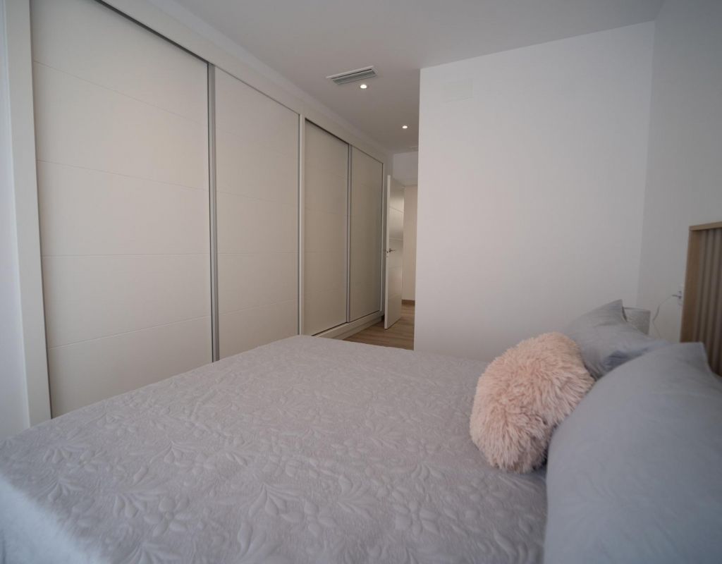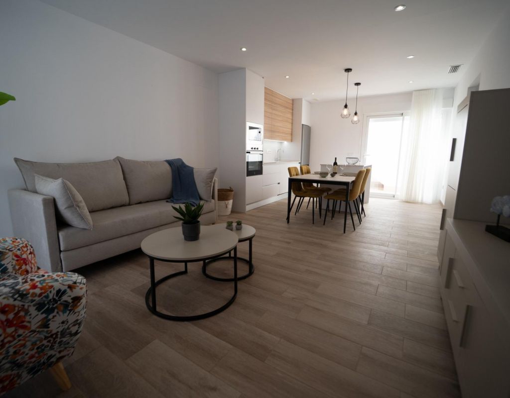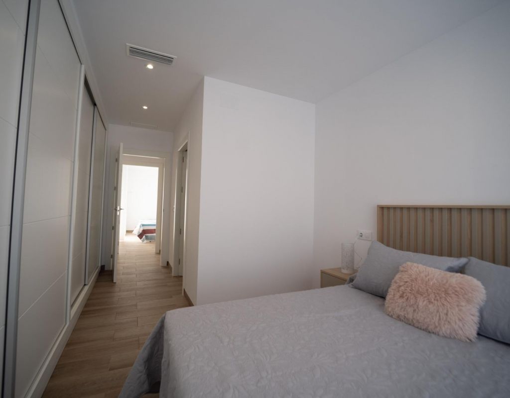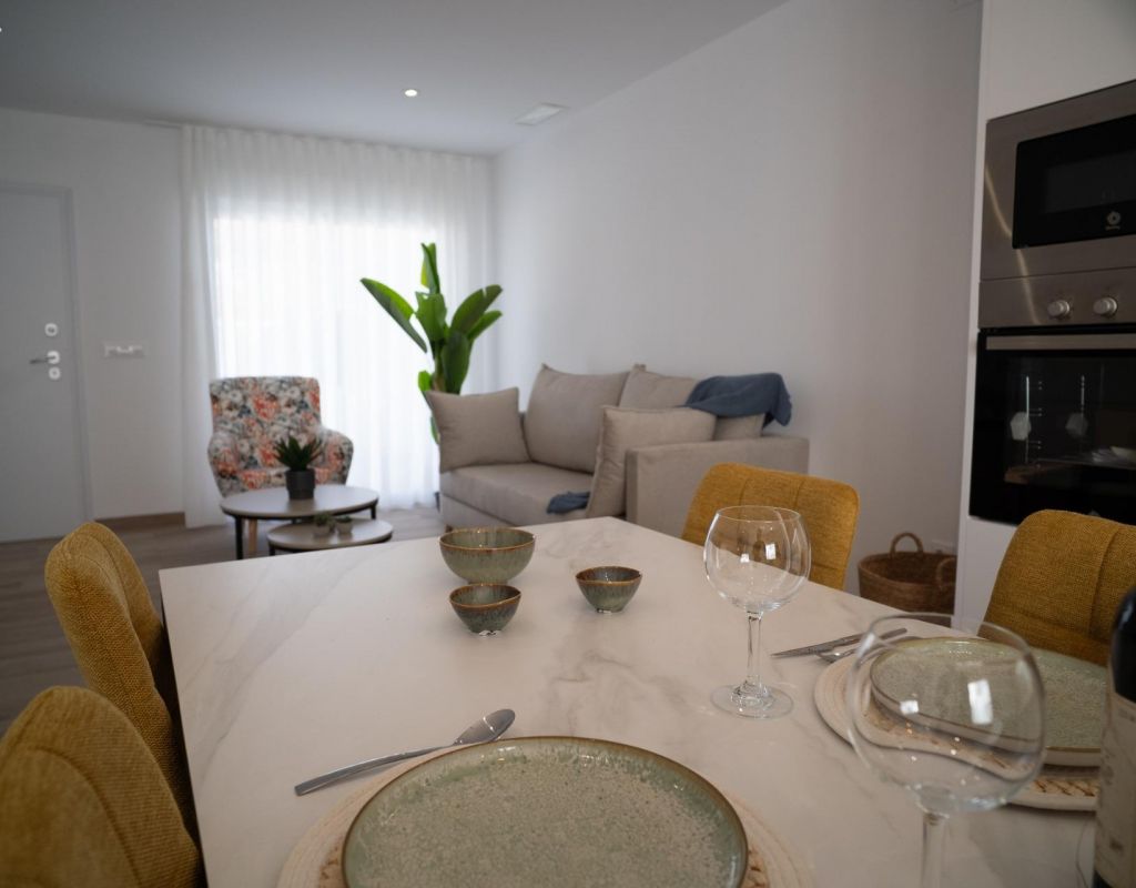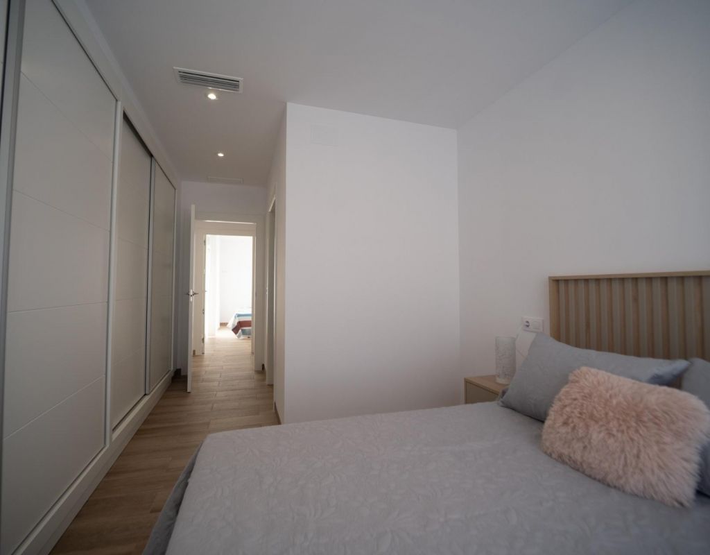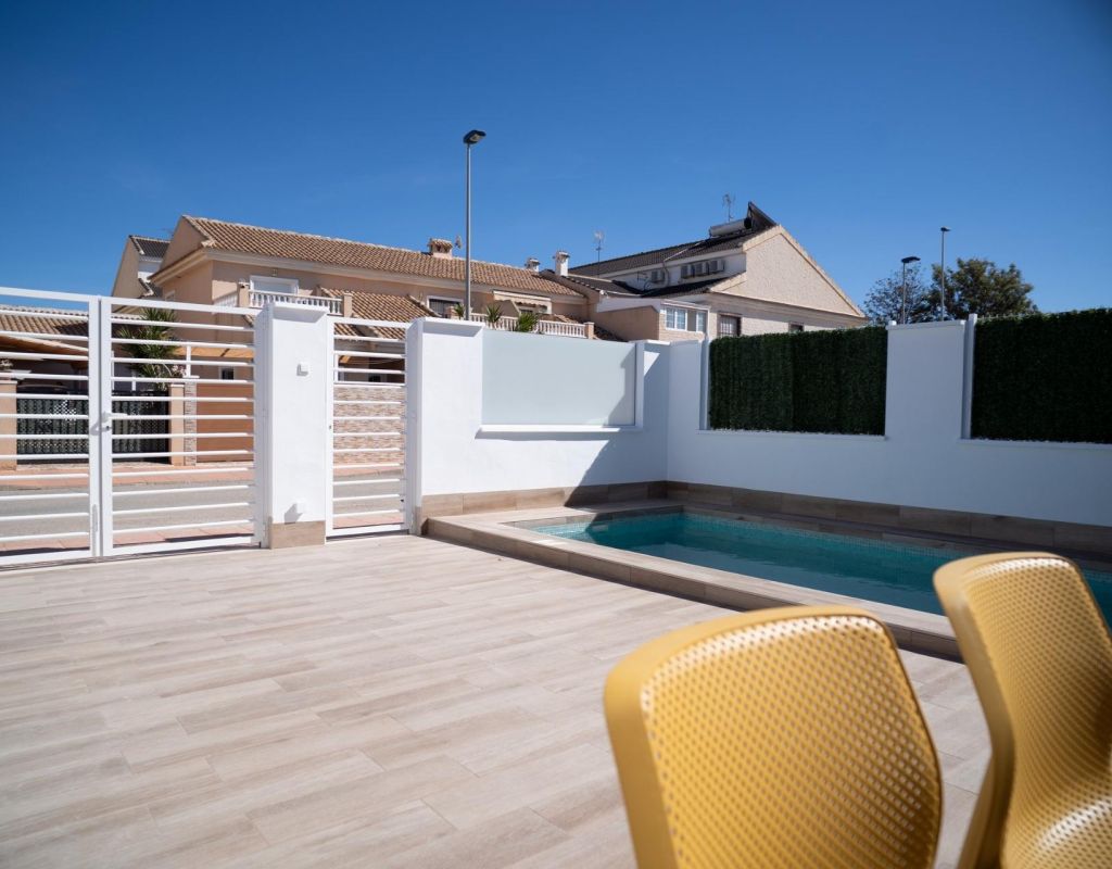 NEW BUILD TOWNHOUSES IN SAN JAVIER New Build luxury complex of 24 one level villas or on 2 floors with private pool, terraced area and solarium with Summer kitchen that allows you to enjoy all hours of sunshine, every day of the year. Each villa has 2 or 3 bedrooms and 2 fitted bathrooms on one level or 3 bedrooms and 3 fitted bathrooms on two levels. Designed with a contemporary style and open planned concept, comprising a fully-fitted kitchen and lounge-dining room. The development is located in San Javier (Murcia), near the beach, surrounded by services, parks, sports facilities and several Golf Courses. The property will meet the highest standards and will be equipped with: Private swimming pool with shower. Kitchen completely furnished and equipped with oven, microwave, fridge, integrated dishwasher, hob and extractor fan. Lighting: inside the property (dining room, kitchen, corridors and bathrooms) as well as in outdoor areas. Lined wardrobes with drawers. Fully fitted bathrooms with toilet, vanity unit, mirror and shower with screen panels. Pre-installation for ducted air conditioning. Solarium with Summer kitchen. Parking space on the plot. San Javier is close to all amenities with easy access to the beach, water sports, shops and the transport network. Here you can enjoy all of the facilities that San Javier has to offer such as the local shops, bars and restaurants as well as being near to shopping centres, the airport of Murcia and all of the beautiful places to be found along the Mar Menor. Corvera/Murcia airport is 30 minutes away and Alicante airport is 45 minutes away.