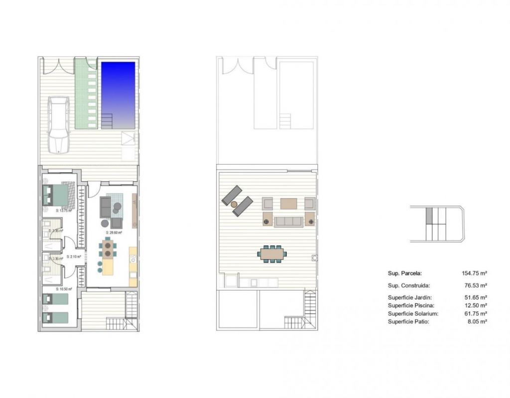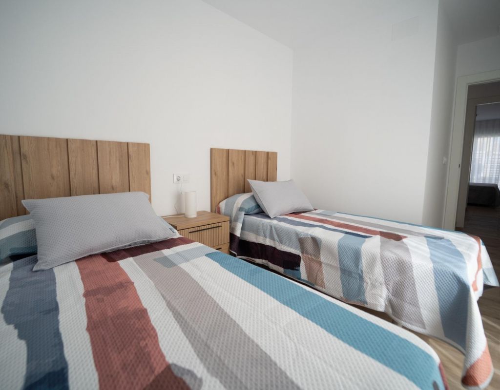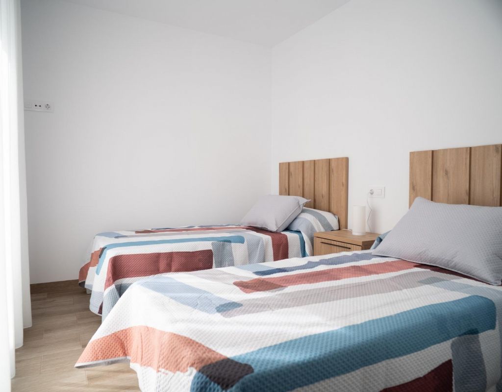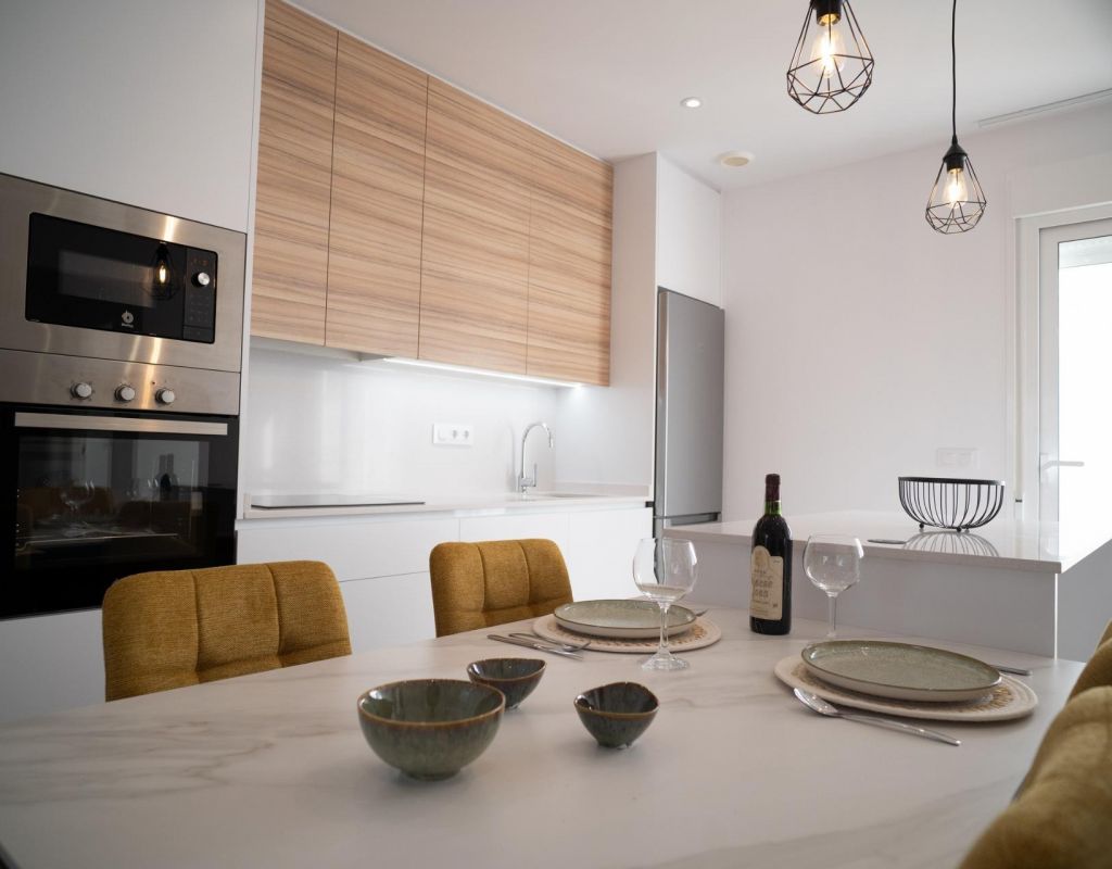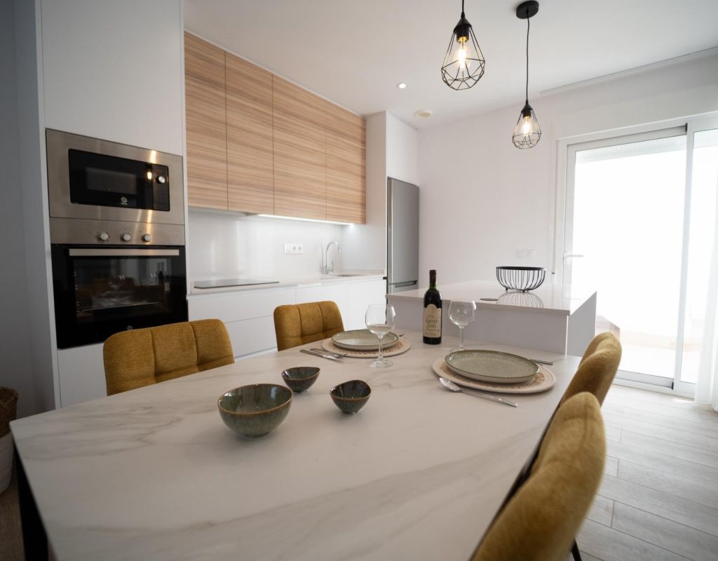 NEW BUILD TOWNHOUSES IN SAN JAVIER New Build luxury complex of 24 one level villas or on 2 floors with private pool, terraced area and solarium with Summer kitchen that allows you to enjoy all hours of sunshine, every day of the year. Each villa has 2 or 3 bedrooms and 2 fitted bathrooms on one level or 3 bedrooms and 3 fitted bathrooms on two levels. Designed with a contemporary style and open planned concept, comprising a fully-fitted kitchen and lounge-dining room. The development is located in San Javier (Murcia), near the beach, surrounded by services, parks, sports facilities and several Golf Courses. The property will meet the highest standards and will be equipped with: Private swimming pool with shower. Kitchen completely furnished and equipped with oven, microwave, fridge, integrated dishwasher, hob and extractor fan. Lighting: inside the property (dining room, kitchen, corridors and bathrooms) as well as in outdoor areas. Lined wardrobes with drawers. Fully fitted bathrooms with toilet, vanity unit, mirror and shower with screen panels. Pre-installation for ducted air conditioning. Solarium with Summer kitchen. Parking space on the plot. San Javier is close to all amenities with easy access to the beach, water sports, shops and the transport network. Here you can enjoy all of the facilities that San Javier has to offer such as the local shops, bars and restaurants as well as being near to shopping centres, the airport of Murcia and all of the beautiful places to be found along the Mar Menor. Corvera/Murcia airport is 30 minutes away and Alicante airport is 45 minutes away.