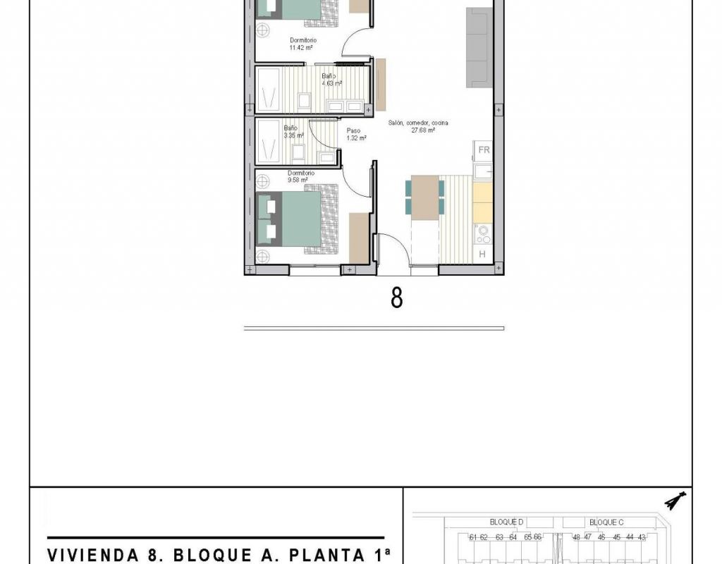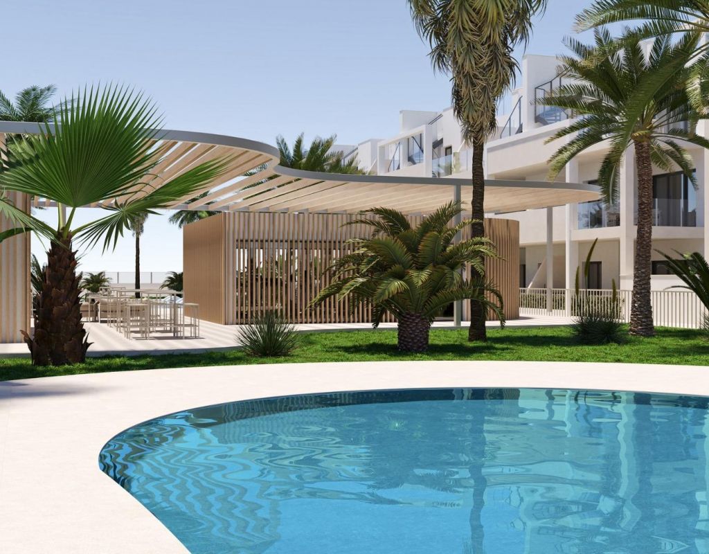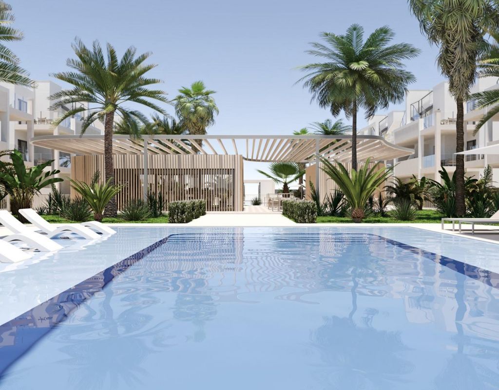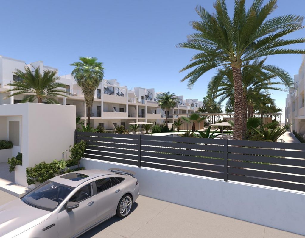Modern New Build Apartments in San Cayetano, Torrepacheco, Murcia Contemporary Living in a Peaceful Mediterranean Setting This exclusive new residential complex is located in San Cayetano, Murcia, part of the municipality of Torre Pacheco, just 9 km from the sea and surrounded by several renowned golf courses. The project combines tranquility, comfort and contemporary design, offering an ideal environment for permanent living, holiday use or investment on the Costa Calida. The development consists of 72 apartments with 2 and 3 bedrooms and 2 bathrooms, one of them ensuite, distributed across four modern buildings. A second phase with bungalows and villas is also planned, adding further value and appeal to the area. Designed Communal Areas for Relaxation and Wellbeing Residents will enjoy carefully landscaped communal spaces that include two swimming pools, beautiful gardens and a fully equipped gym. These areas create a pleasant and social environment where neighbors can relax, exercise and enjoy the Mediterranean lifestyle. The residential complex also features 40 kW of photovoltaic solar panels that help support the community electricity costs, contributing to a more sustainable and energy efficient living environment. Apartments with Private Outdoor Spaces and Solarium Each apartment is designed to make the most of outdoor living. Ground floor properties include private gardens, first floor apartments offer spacious terraces, and top floor homes benefit from both a terrace and a private rooftop solarium. All properties include a summer kitchen on the terrace or solarium, perfect for enjoying the sun all year round. All homes come with an outdoor parking space and a private storage room in the basement, adding extra convenience and practicality. Quality Features and Energy Efficient Installations These new build apartments are delivered with quality finishes and modern installations to ensure comfort and functionality, including: Fully fitted kitchen with appliances Fully equipped bathrooms with furniture, mirror, lighting and shower screens Preinstallation for ducted air conditioning Aerothermal system for hot water The combination of modern materials and energy efficient systems makes these homes ideal for year round use. Excellent Location Close to Golf, Beaches and Services San Cayetano is a quiet and well connected village with local amenities, shops and services. Its strategic location allows easy access to beaches, golf courses and major transport links. Key distances to points of interest include: Mar Menor beaches 9 km Roda Golf 6 km La Serena Golf 14 km Los Alcazares 10 km Cartagena 30 km Murcia Corvera Airport 25 km Alicante Airport 90 km Secure Your Property in San Cayetano Today This modern residential complex offers an excellent opportunity to enjoy Mediterranean living in a peaceful yet well connected area. Contact us today for more information and reserve your new build apartment in San Cayetano.