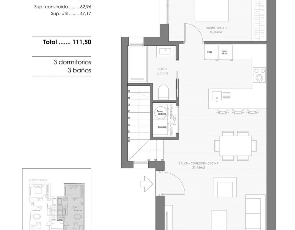 Boutique New Build Apartments and Duplex Penthouses in Benejúzar Exclusive Project with Only Four Modern Homes This boutique new build development in Benejúzar consists of just four carefully designed properties, offering privacy, quality and contemporary Mediterranean style. The project includes two ground floor apartments with 2 bedrooms, 1 bathroom, terrace and double parking space, and two duplex penthouses with 3 bedrooms, 3 bathrooms, a terrace and a private rooftop solarium. The architecture combines clean lines, natural stone and wood details, creating a warm and elegant design that blends modern aesthetics with Mediterranean charm. Every detail has been considered to deliver a bright, functional and energy efficient home designed for comfortable everyday living. High Quality Finishes and Energy Efficient Features The development stands out for its excellent construction standards and carefully selected materials. Each property is equipped with features that enhance comfort, durability and efficiency. Key specifications include: Preinstallation for ducted air conditioning Individual aerothermal system for heating and hot water Contemporary fitted kitchen with quartz worktop, extractor hood, ceramic hob, electric oven and built in microwave Bathrooms with modern fittings, flat shower trays, glass screens and thermostatic taps Aluminium exterior carpentry with thermal break and double glazing Motorized shutters in the living room and master bedroom Security entrance door and video intercom system These qualities ensure a modern home that is both practical and energy conscious. Peaceful Location with All Services Within Reach Benejúzar is a charming town in the Vega Baja area of Alicante, known for its quiet residential atmosphere, green surroundings and friendly local community. The development is located in a tranquil area close to parks, schools, sports facilities, a town hall heated swimming pool, auditorium, health center and commercial areas. Residents benefit from a relaxed lifestyle while remaining close to essential services and excellent road connections. Distances to Key Points of Interest Orihuela 8 km Guardamar del Segura Beach 20 km Hospital Vega Baja 4 km La Finca Golf 12 km Alicante Airport 45 km Ideal for Living or Investment on the Costa Blanca This small scale development offers a unique opportunity to own a modern, high quality home in a peaceful yet well connected location on the Costa Blanca. Whether you are looking for a permanent residence, a holiday home or a rental investment, these properties offer excellent value and lifestyle appeal. Contact us today to receive more information or to arrange a viewing of this exclusive project in Benejúzar.
