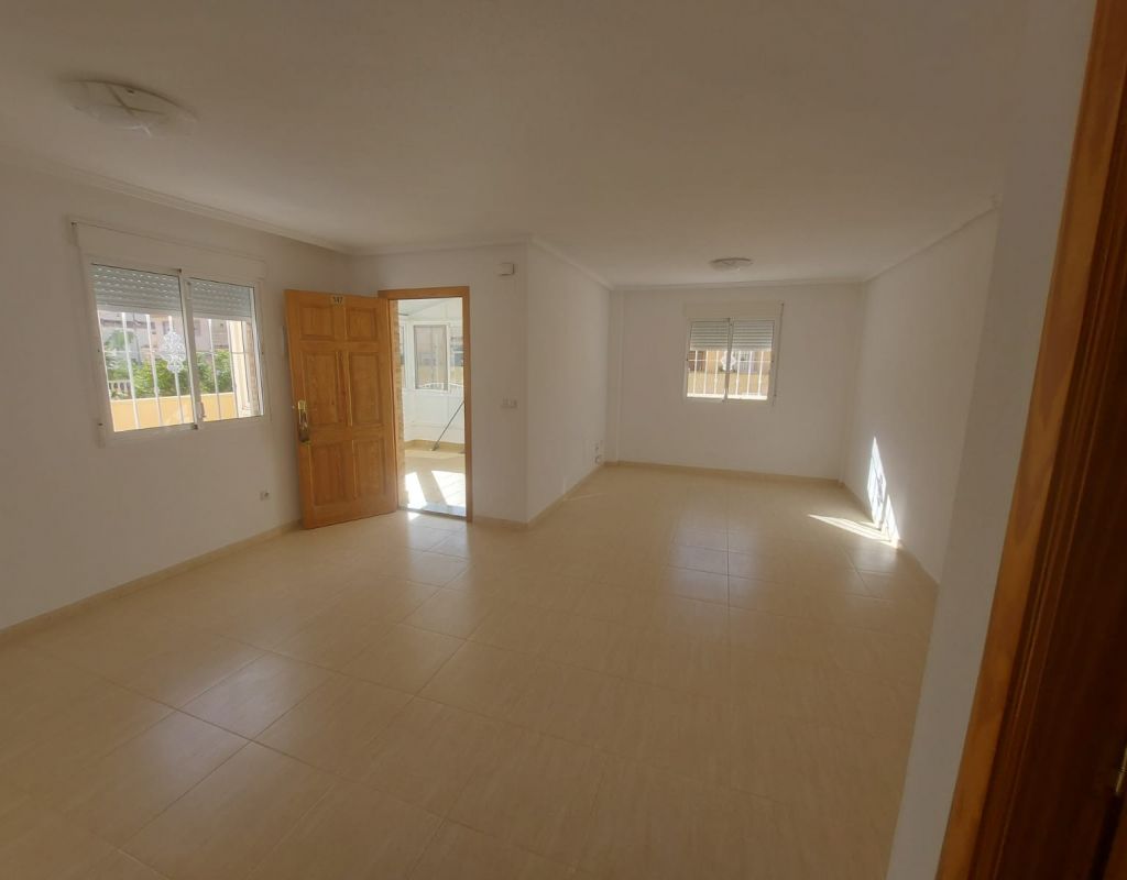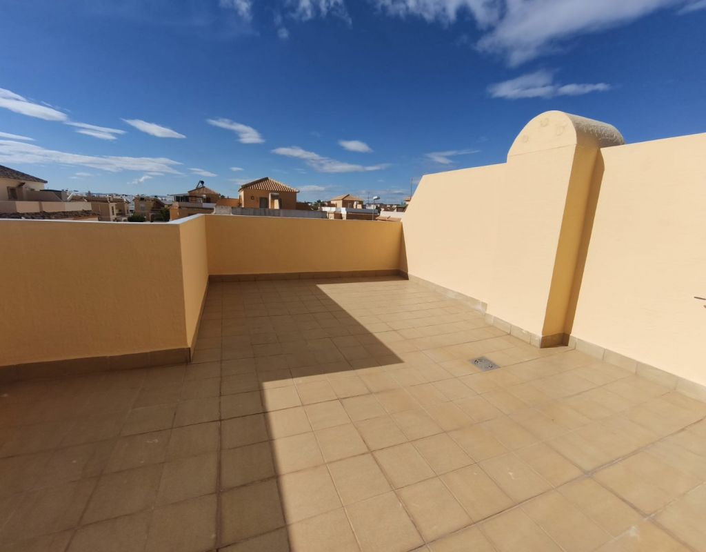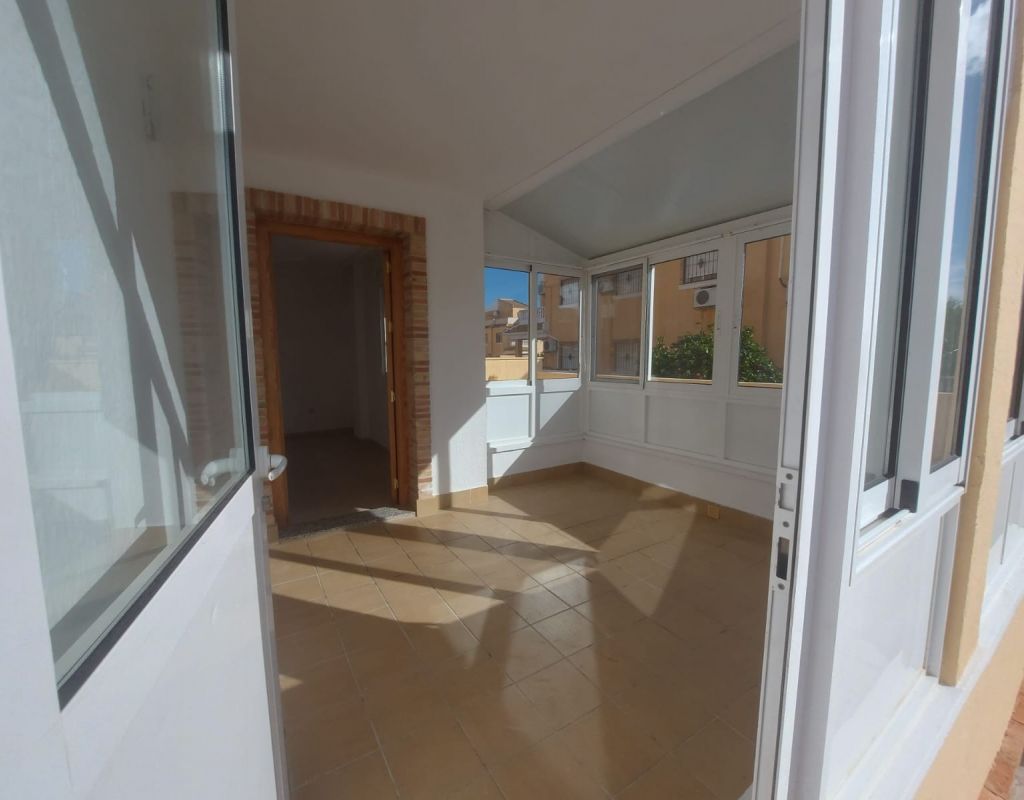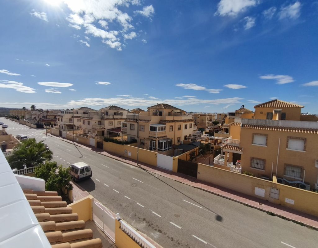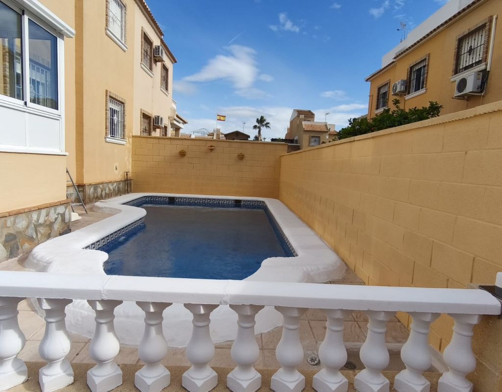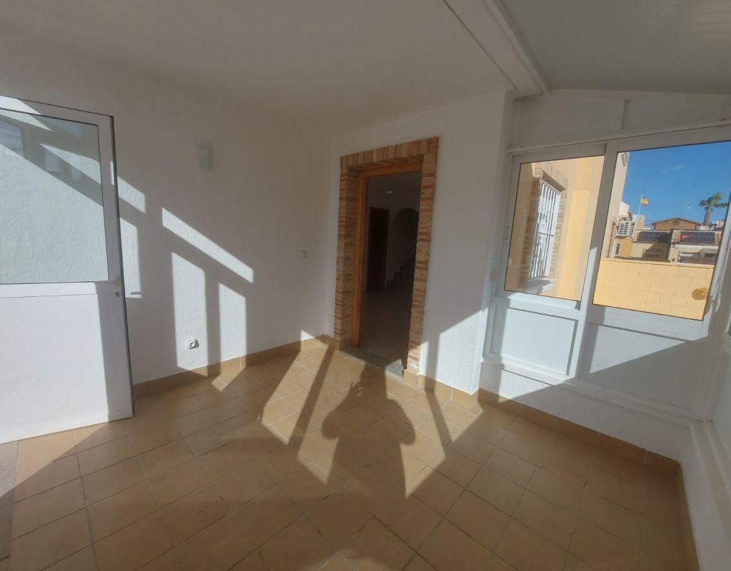 Beautiful two-story quad property with solarium, on a plot with private pool and communal pool. Located in Rojales, Residencial Lo Marabú, Ciudad Quesada. Established residential area (shops, pharmacies, supermarkets (ALDI), buses, and schools), with beautiful surroundings for walks (Laguna Salada de la Mata), trails, and parks. A 10-minute drive from La Mata beach, 5 minutes from the center of Rojales, and close to the CV-905 road, providing easy access to the coast and inland areas. The property is on 2 levels plus solarium, with private garden and pool at the entrance, as well as a residential complex with two communal pools. Completely renovated and ready to move into. The ground floor, where the entrance is located, consists of a plot and private pool. The house is accessed through a fully enclosed and glazed entrance hall, living-dining room, completely renovated kitchen with brand new furniture (wall and base units, black marble countertop, and stainless steel extractor hood), and full bathroom. On the first floor, accessed via an internal staircase, there are three bedrooms (the master bedroom with a built-in wardrobe and access to a terrace), a full bathroom, and a glazed terrace facing the plot and private pool. On the second floor, accessed via an internal staircase, there is a 25 m² solarium, completely open to the outside, and a small enclosed, glazed 8 m² tower solarium. Urbanization with two communal swimming pools.