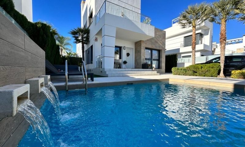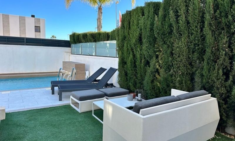 Luxury modern villa with a large plot and private garden, including a swimming pool and private parking. It has 3 bedrooms and 3 bathrooms, located on two floors, with a magnificent solarium, the total area of the house is 137 m2, the terrace area is 114m2, the plot area is 312m2 A gated Mediterranean complex with a large green area and three swimming pools, located in the elite part of Ciudad Quesada, Donna Peppa district, surrounded by new modern houses. The bungalow has its own yard and its own Parking. Nearby there are several supermarkets, 3 Schools, kindergartens, a Sunday market with the freshest farm products, bars and restaurants within walking distance!