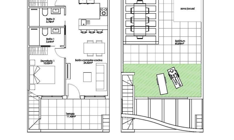 Exclusive New Build Bungalows in Pilar de la Horadada - Unique Style and Privileged Location A Unique Style that Defines your New Home This new development of 2 and 3 bedroom bungalows in Pilar de la Horadada stands out for its modern design and undulating structure, which gives each home a unique personality. You will be able to choose between: Ground floors with front garden and back patio. Top floors with private solarium. The residential complex has a communal swimming pool and spacious communal areas designed for the relaxation and enjoyment of the whole family. In addition, the development offers an outdoor gym, communal jacuzzi and parking area for bicycles, as well as a parking space assigned to each property with the option of charging electric vehicles, designed to offer you maximum comfort and quality of life. Bright and high quality interiors Each home has been designed to offer an experience of comfort and functionality. Open-plan spaces maximise the feeling of spaciousness and light, while neutral tones and wood finishes create an elegant and welcoming ambience. Spacious and bright bedrooms, with the master bedroom offering access to a private terrace. Open concept kitchen, integrated into the living room for convenience. Modern bathrooms with top quality materials. Pilar de la Horadada - Quality of Life on the Costa Blanca Located in the province of Alicante, Pilar de la Horadada is a coastal town that combines tradition with a relaxed atmosphere. It is known for its beautiful beaches, such as Playa de las Higuericas, with golden sand crystal clear Mediterranean waters. In addition to its coastline, the town has a vibrant main street lined with shops, supermarkets, restaurants and picturesque squares. Its excellent infrastructure includes cycle paths, hiking trails and a wide variety of sporting activities. Proximity to Major Points of Interest This residential development offers convenient access to the most important destinations in the area: Torre de la Horadada beach - 3 km (5 min drive). Lo Romero Golf Course - 5 km (10 min drive). La Zenia Boulevard Shopping Centre - 15 km (15 min drive). Corvera Airport (Murcia) - 40 km (40 min drive). Alicante Airport - 55 km (55 min drive). Secure your Costa Blanca Property Today Don't miss out on the opportunity to purchase a brand new property in an exceptional location. Contact us today for more information and to arrange a viewing.