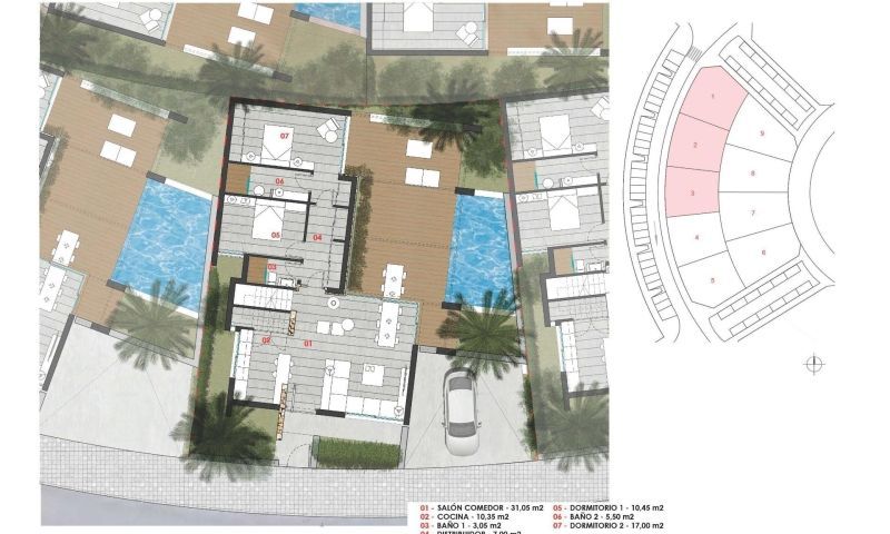 New Build Villas in Roldán – Modern Living with Mediterranean Style Exclusive New Construction Villas in El Alba Mediterranean Resort Discover this limited collection of 3 newly built independent villas in Roldán, located within the prestigious El Alba Mediterranean Resort. Designed on a single floor for maximum comfort and functionality, each villa offers the option to choose between 2 or 3 bedrooms and includes 2 bathrooms, a private pool, and a rooftop solarium. These contemporary homes combine elegant interior design with Mediterranean-inspired exteriors featuring natural stone and wood elements. The result is a perfect blend of style, quality, and convenience in a serene yet well-connected setting. Spacious, Bright, and Functional Interiors Each villa features: Open-plan living and dining area with a modern American-style kitchen Built-in wardrobes in all bedrooms Private garden with swimming pool Rooftop solarium ideal for sunbathing and outdoor entertaining Two private parking spaces Pre-installation of ducted air conditioning Kitchens equipped with high and low cabinets The single-level layout ensures easy accessibility and a practical flow throughout the home, making these villas ideal for both permanent living and holiday use. Unbeatable Location in Roldán, Murcia El Alba Mediterranean Resort is a gated residential community offering a range of amenities including: A social club with bar and lounge Communal swimming pool Paddle tennis courts Landscaped areas and pedestrian-friendly streets Located just a short walk from the center of Roldán, residents have access to supermarkets, banks, restaurants, and cafés. The peaceful town of Roldán provides all daily services while preserving a relaxed village charm. Nearby Points of Interest Beaches of the Mar Menor: 15 km Terrazas de la Torre Golf Course: 4 km La Torre Golf Resort: 6 km Dos Mares Shopping Center: 25 km Murcia International Airport (RMU): 20 km Cartagena city center: 35 km Murcia city center: 36 km This region of Murcia is renowned for its mild climate, natural beauty, and a high quality of life. With excellent road connections, you can reach nearby cities, beaches, and golf courses within minutes. Your dream home in the sun is waiting. Contact us now to schedule a visit or request more information.