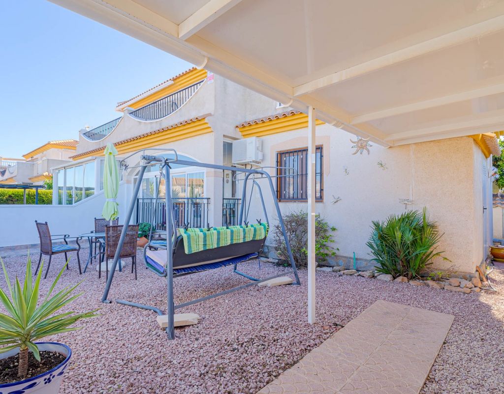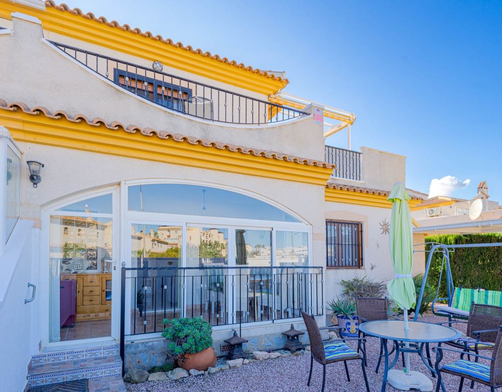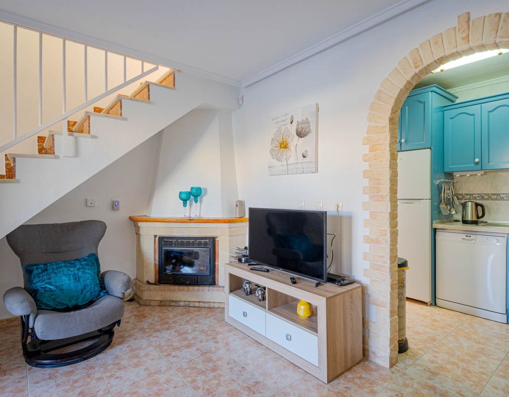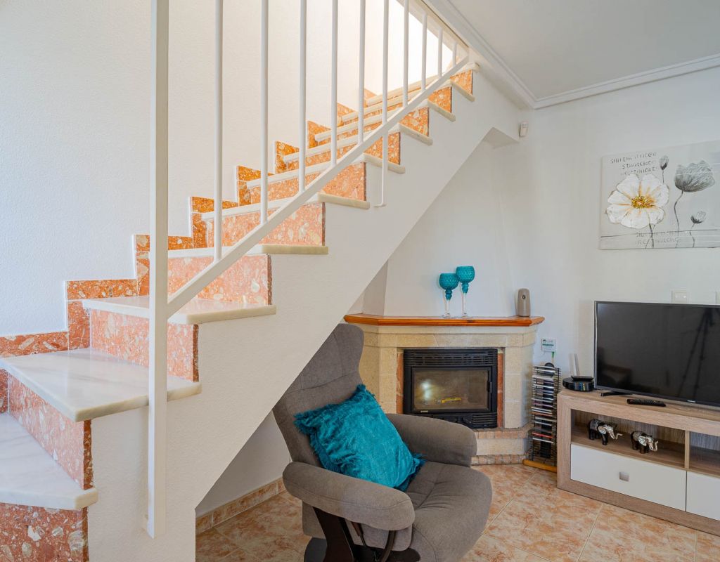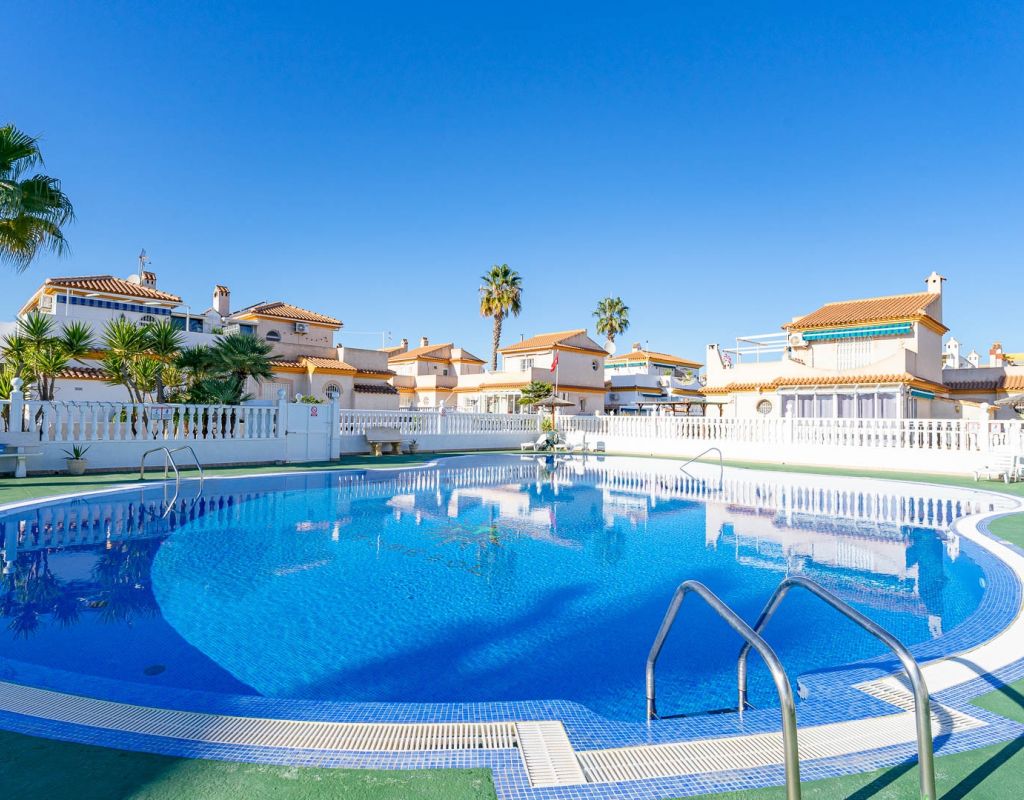 3 Bedroom Property for Sale in Playa Flamenca – Costa Blanca South We are pleased to present this well-presented 3 bedroom, 2 bathroom property for sale in Playa Flamenca, one of the most popular areas on the Orihuela Costa, Costa Blanca South. Spacious & Well-Maintained Interior This exceptionally well-maintained home is offered furnished , making it an excellent turnkey option for both holiday use and permanent living. Covered and glazed terraceCozy lounge-diner with feature fireplaceFully fitted kitchenSeparate utility room2 bedrooms Family bathroom Master Bedroom & Private Solarium On the upper level you will find the main bedroom, featuring: Fitted wardrobesEn suite bathroom From both the bedroom and landing, there is direct access to a large, sun-drenched private solarium, perfect for relaxing, entertaining, or sunbathing in total privacy. Outdoor Space & Parking Externally, the property benefits from: GardenOff-road private parking The property forms part of the attractive Residential Iria I, a secure gated development offering a large communal swimming pool and generous sunbathing areas — ideal for enjoying the Mediterranean climate. Playa Flamenca is a well-established seaside resort on the Orihuela Costa, highly sought after for both holiday homes and permanent living. The area offers excellent infrastructure and is close to top golf courses such as: VillamartínLas RamblasCampoamorLas Colinas Golf Why This Property? ✔ Ideal holiday home or permanent residence✔ Sought-after location in Playa Flamenca✔ Close to beaches, golf, shopping & airports