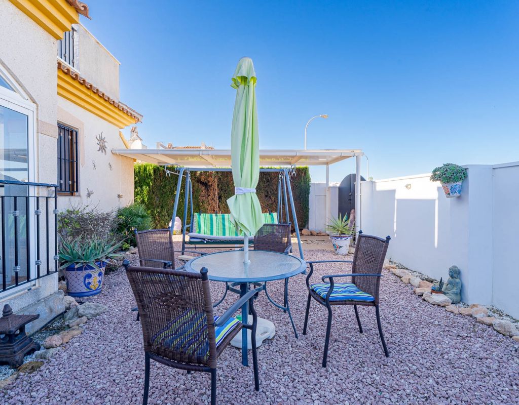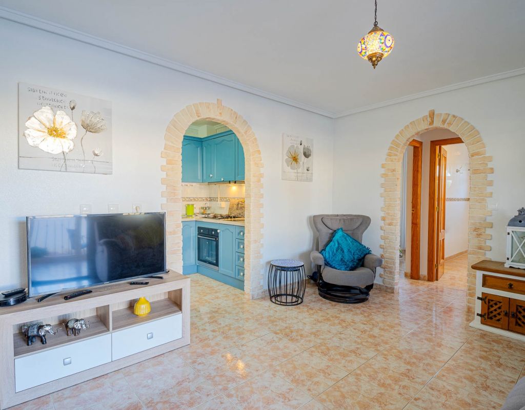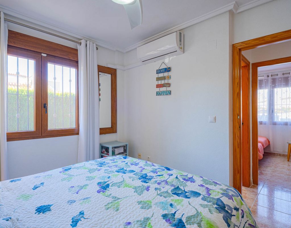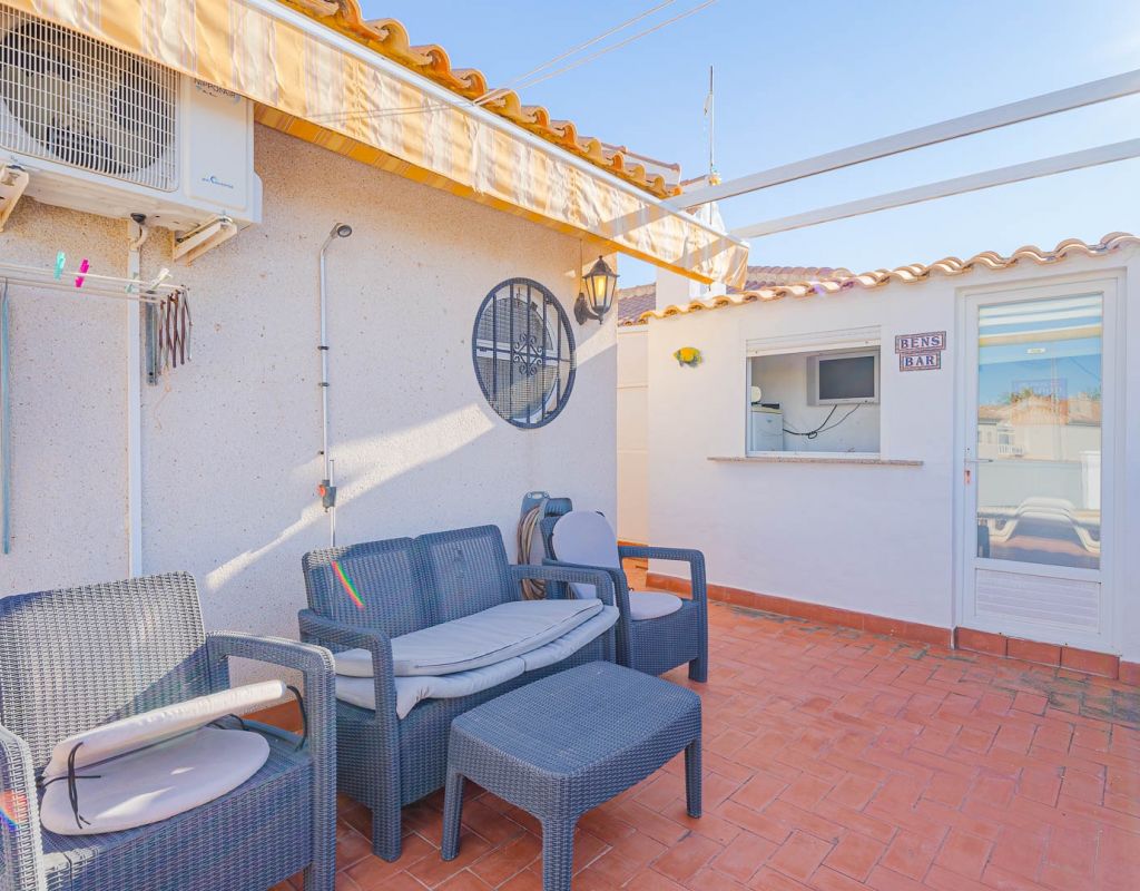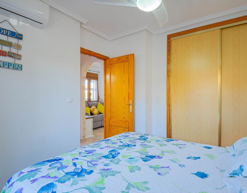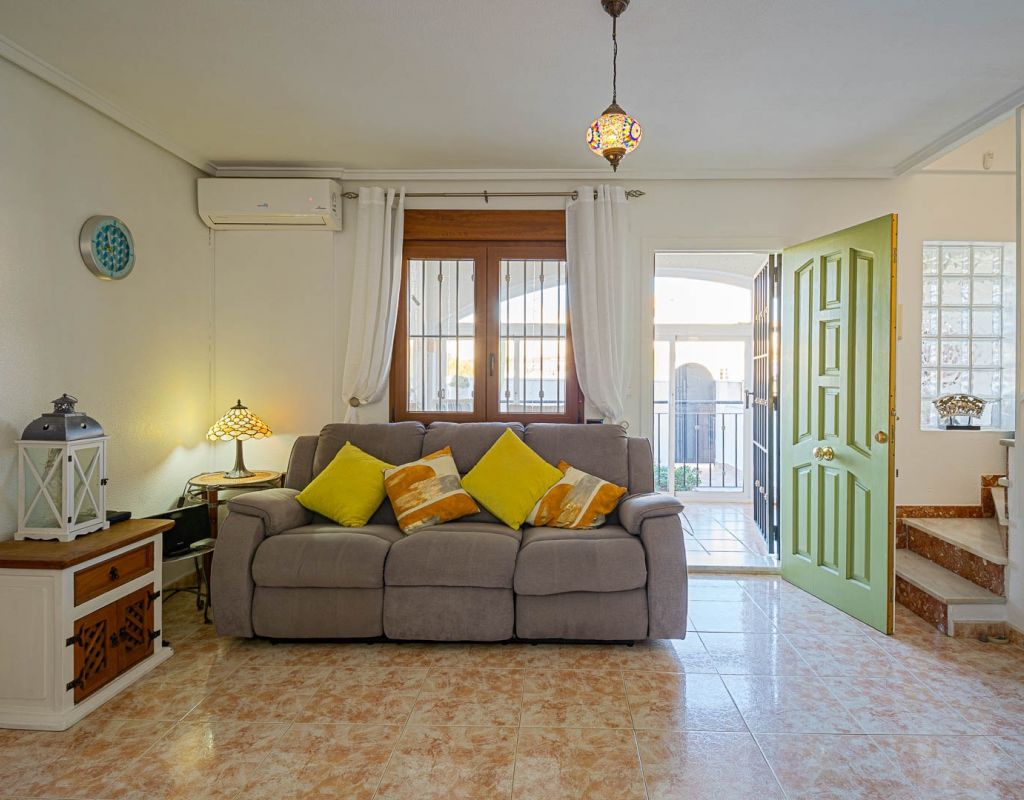 3 Bedroom Property for Sale in Playa Flamenca – Costa Blanca South We are pleased to present this well-presented 3 bedroom, 2 bathroom property for sale in Playa Flamenca, one of the most popular areas on the Orihuela Costa, Costa Blanca South. Spacious & Well-Maintained Interior This exceptionally well-maintained home is offered furnished , making it an excellent turnkey option for both holiday use and permanent living. Covered and glazed terraceCozy lounge-diner with feature fireplaceFully fitted kitchenSeparate utility room2 bedrooms Family bathroom Master Bedroom & Private Solarium On the upper level you will find the main bedroom, featuring: Fitted wardrobesEn suite bathroom From both the bedroom and landing, there is direct access to a large, sun-drenched private solarium, perfect for relaxing, entertaining, or sunbathing in total privacy. Outdoor Space & Parking Externally, the property benefits from: GardenOff-road private parking The property forms part of the attractive Residential Iria I, a secure gated development offering a large communal swimming pool and generous sunbathing areas — ideal for enjoying the Mediterranean climate. Playa Flamenca is a well-established seaside resort on the Orihuela Costa, highly sought after for both holiday homes and permanent living. The area offers excellent infrastructure and is close to top golf courses such as: VillamartínLas RamblasCampoamorLas Colinas Golf Why This Property? ✔ Ideal holiday home or permanent residence✔ Sought-after location in Playa Flamenca✔ Close to beaches, golf, shopping & airports