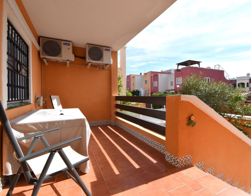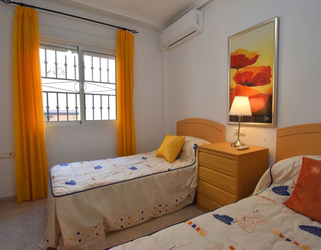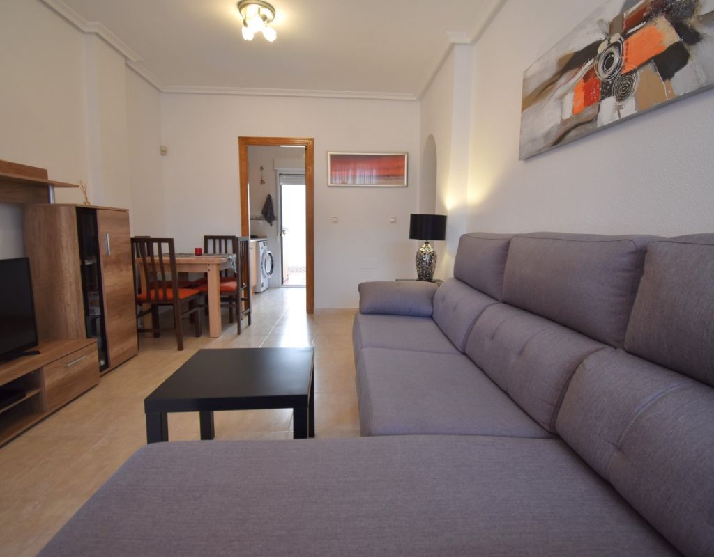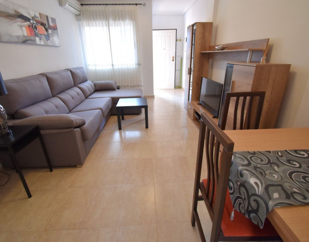 This South Facing, Two Bedroom, Ground Floor Apartment in Los Altos is located in a well-established residential area, just a 10 minute walk to Via Park 3, JYSK furniture store, a variety of café bars, and a main chain supermarket. The many amenities of the Orihuela Costa, including beaches, La Zenia Boulevard shopping centre, and several golf courses, can all be reached within a 10 minute drive, making this an ideal Costa Blanca South location. The property is accessed via a private front garden leading to a covered terrace, perfect for outdoor seating. Inside, the accommodation comprises a lounge/dining room, a separate fitted kitchen with a door leading out to a tiled patio area, two double bedrooms with built-in wardrobes, and both a family shower room and a bathroom, offering added convenience. Externally, the 19m² tiled front garden features planted borders, providing a pleasant and low-maintenance outdoor space. There is plenty of parking opportunity, along with the added benefit of a choice of two communal swimming pools. This well-located air conditioned ground floor apartment offers comfortable living and excellent access to amenities, making it ideal as a permanent residence, holiday home, or investment opportunity on the Costa Blanca South.