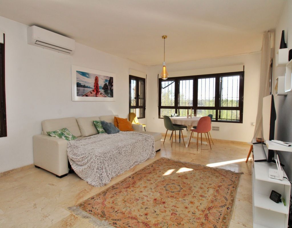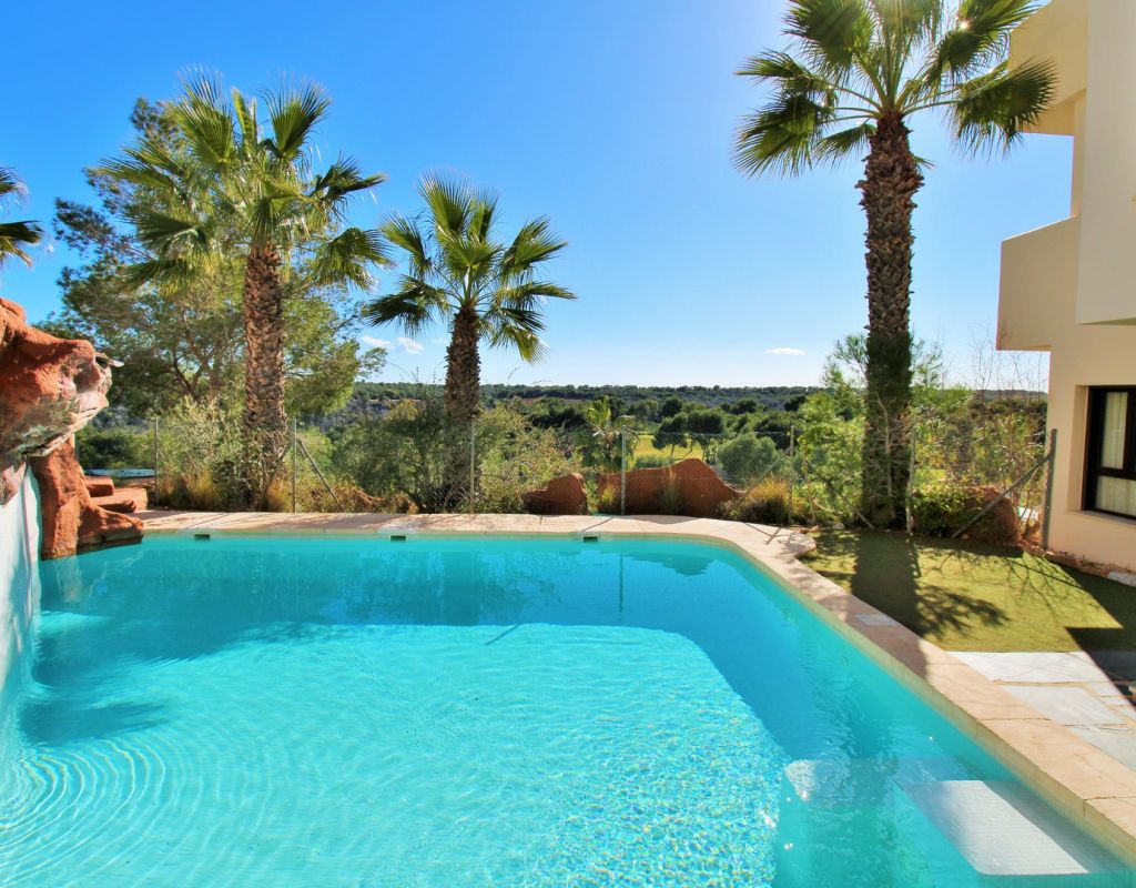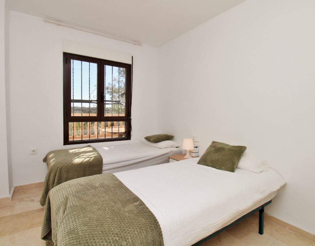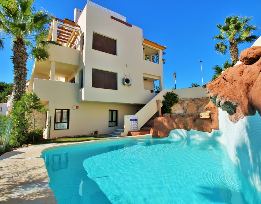 A spacious South-facing 2 bedroom, 2 bathroom ground floor apartment located within the sought-after Altamira V community in Las Ramblas Golf, just a short walk from the prestigious golf clubhouse. The property offers a bright and airy interior and comprises a generous lounge-dining area, leading to a fully equipped kitchen with separate utility room to the rear. There are two double bedrooms with fitted wardrobes, including a master bedroom with en-suite bathroom featuring a walk-in shower, along with a family bathroom. From the living area, you access a private South-facing terrace enjoying pleasant views towards the golf course — an ideal space for outdoor dining or relaxing in the sun throughout the year. Altamira V is a well-maintained community offering residents access to a communal swimming pool and jacuzzi area, surrounded by landscaped gardens. The apartment is perfectly positioned just a couple of minutes’ walk from the Las Ramblas Golf Club House, while the popular La Fuente Commercial Centre, supermarkets, restaurants, and the beautiful Orihuela Costa beaches are all just a short drive away. An excellent opportunity whether you are looking for a holiday home, permanent residence, or investment property in one of the most desirable golf communities on the Orihuela Costa.