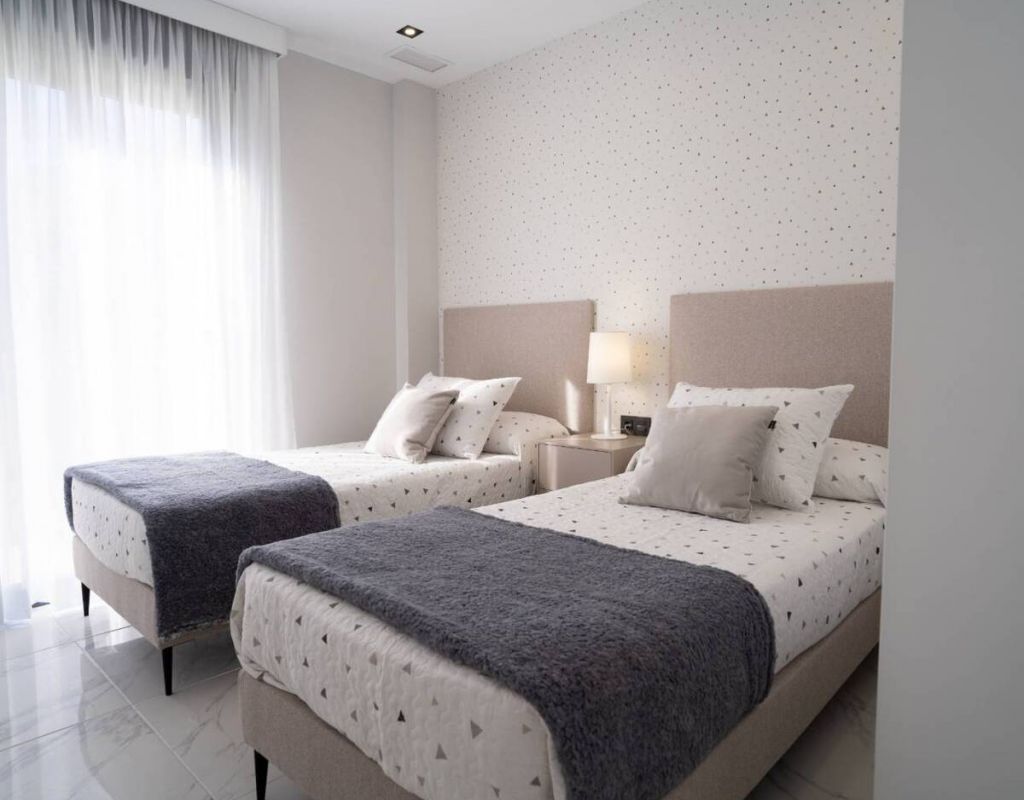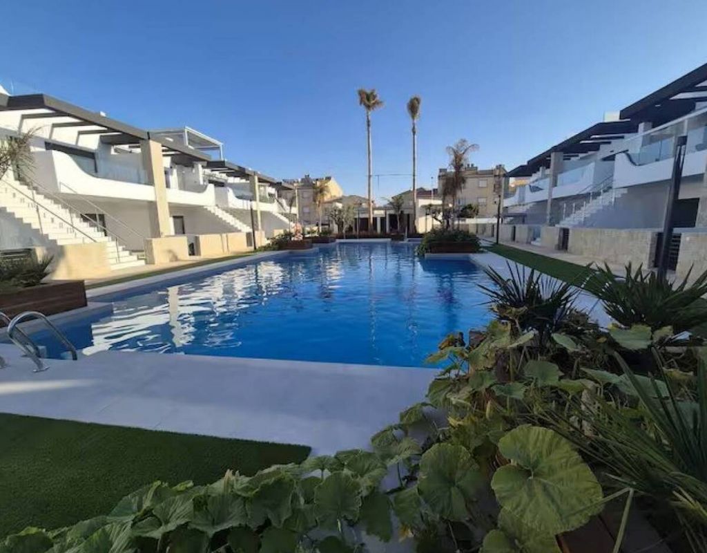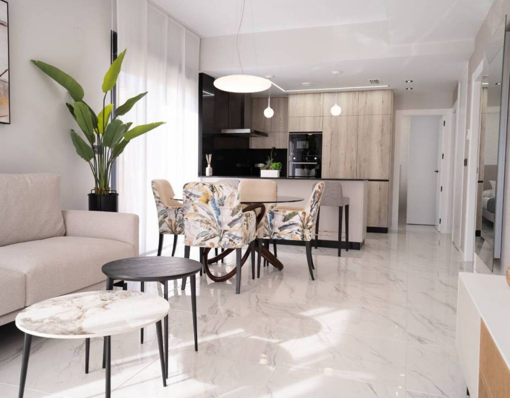 Innova Beach in Punta Prima. Innova Beach is a new residential development consisting of homes located close to the beach (within walking distance, approximately 800 m – 1 km) in the popular coastal town of Punta Prima. The project offers various types of residential units with modern designs and shared communal facilities.Residential Innova Beach 5 is a brand new development of 2/3 bedroom, 2 bathroom luxurious apartments located in Punta Prima, a short walk from a host of amenities and the blue flag beaches. This gated exclusive development has stunning landscaped gardens complete with swimming pool, outdoor gym, children's play area, jacuzzi and children's pool.Each property is finished to the highest standard and includes a modern kitchen with fitted appliances, LED lighting, pre installation of vented air conditioning and there is a secure underground parking place also included.This 3 bedroom ground floor apartment comprises of a lounge with patio doors leading out into the large garden/ terrace where you have the option to add a private pool, an open plan modern kitchen with integrated appliances including oven, hob, extractor, fridge/freezer, dishwasher, washing machine and microwave, dining area, a master bedroom with fitted wardrobes and en-suite, two further double bedrooms and a guest bathroom. There is also a rear terrace which can be accessed from bedroom 2 and 3.Punta Prima is a mature residential area and is only a short walk to the Punta Marina commercial centre where you will find numerous shops, bars and restaurants. There is also a stunning promenade for lovely walks, several golf courses nearby including Villamartin, Las Ramblas, Campoamor and the award winning Las Colinas golf resort. La Zenia Boulevard and the blue flag beaches are a short drive away.