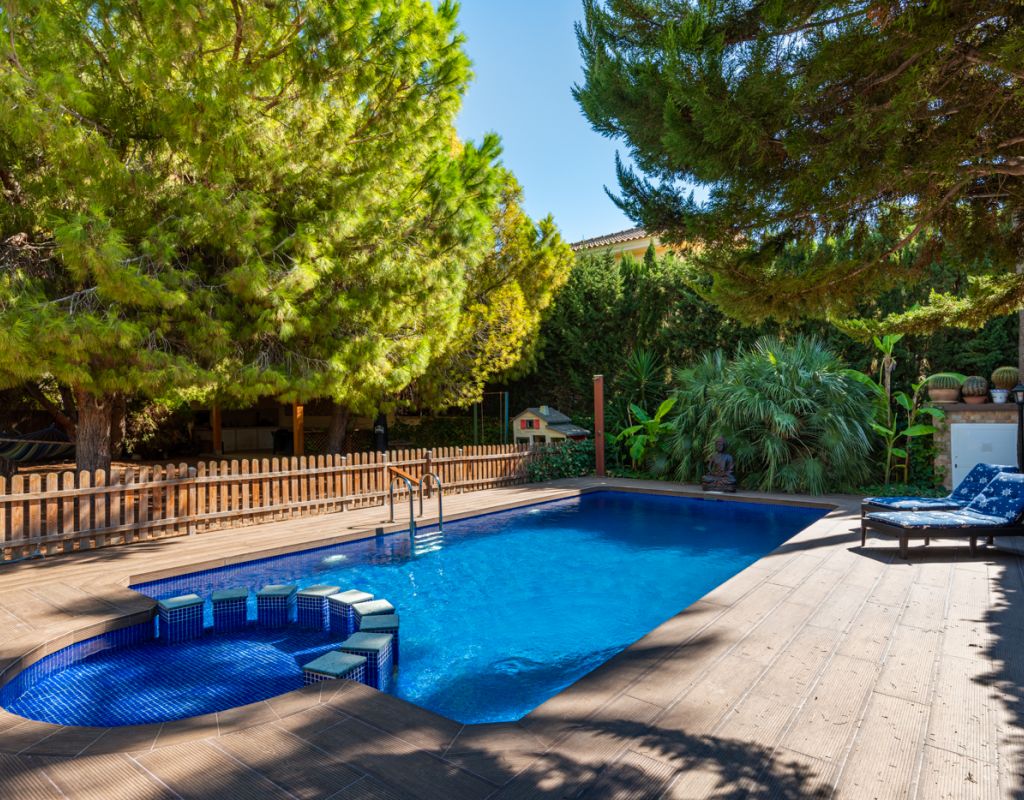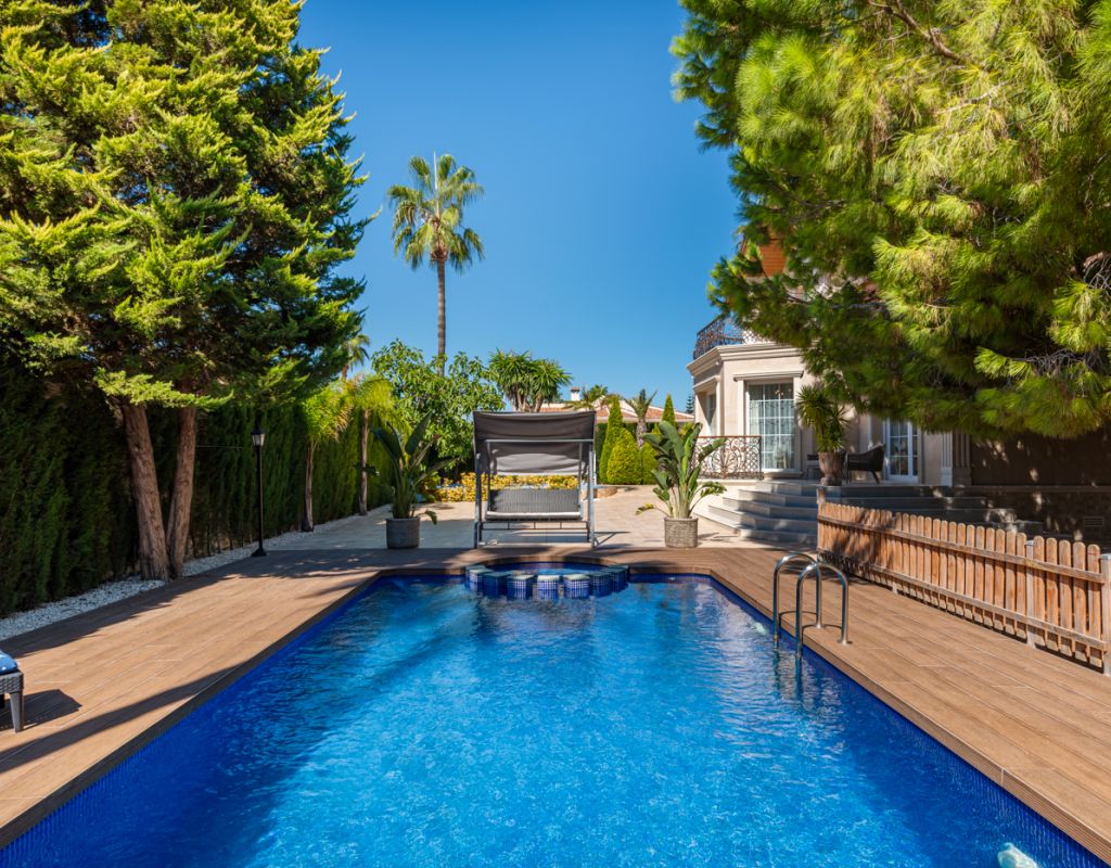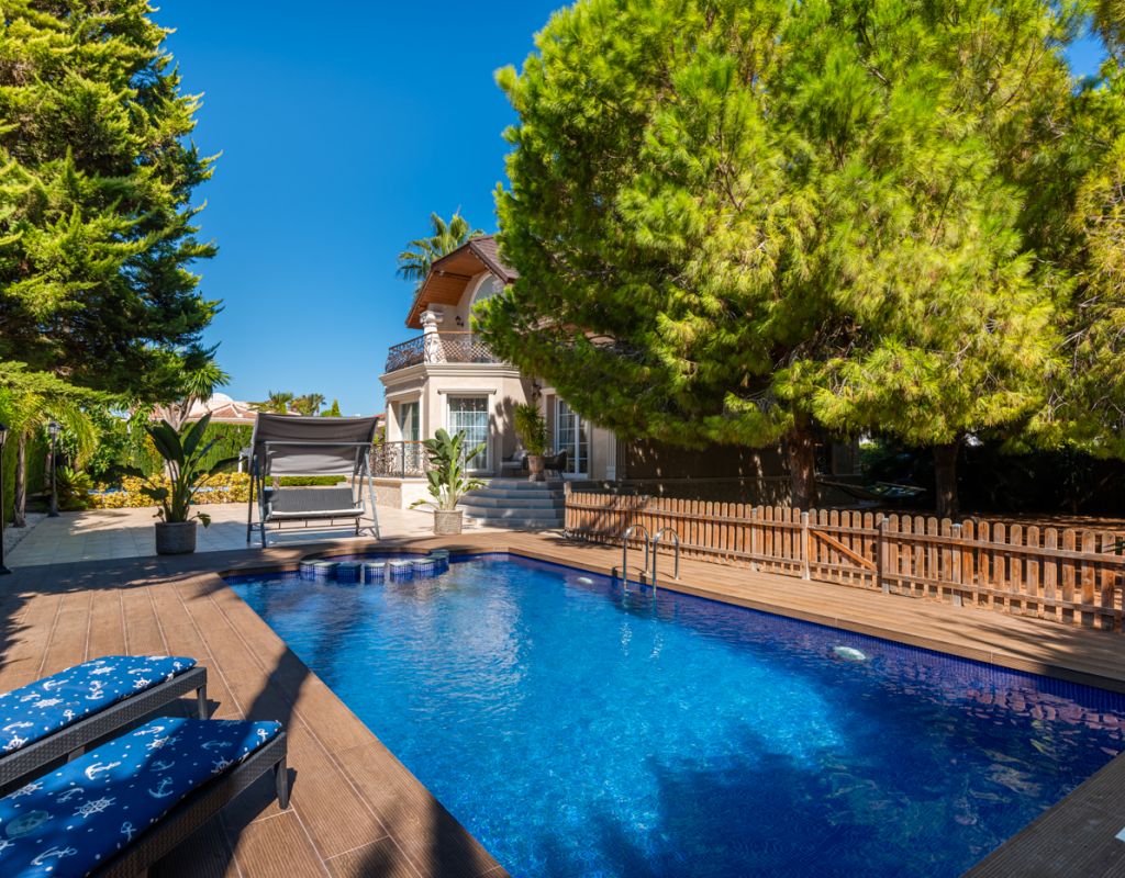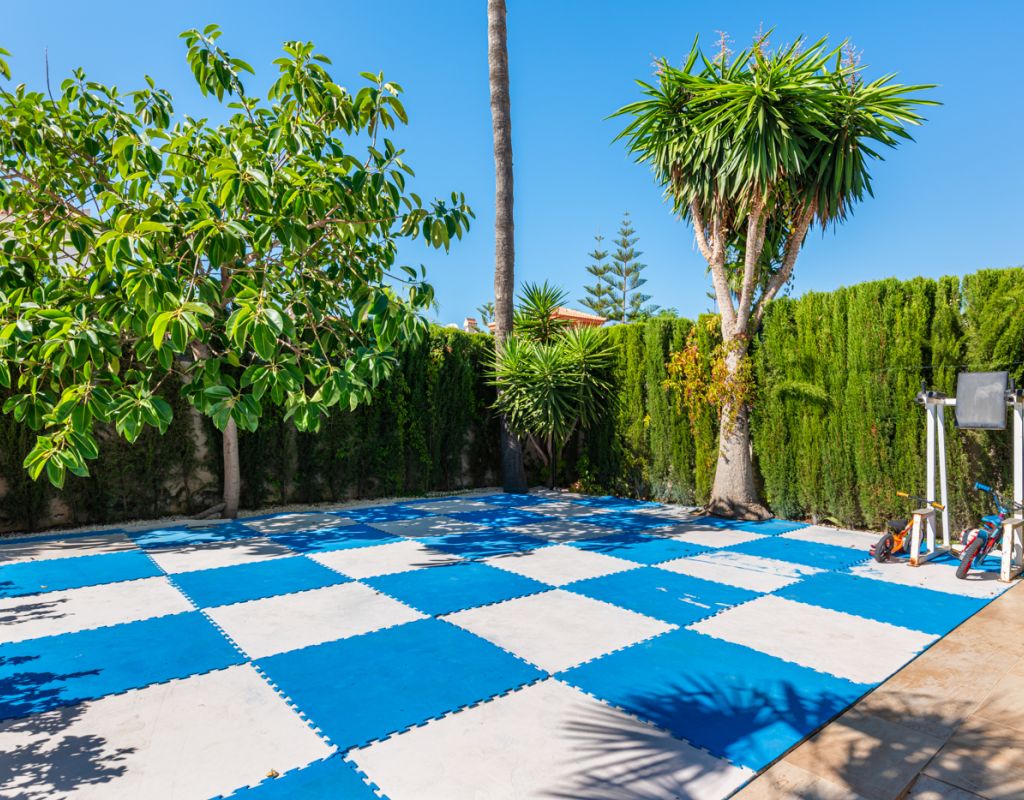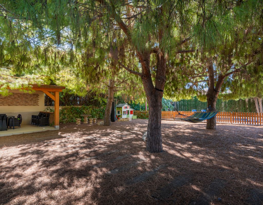 We are pleased to present this beautiful house which contains 5 bedrooms and 3 bathrooms in the popular Doña Pepa - Ciudad Quesada. The home is 303sqm including a 20sqm garage and consists of two floors. You enter an open hall where you have a bright and open access to the living room with high ceilings. Furthermore you have 2 double bedrooms and 1 bathroom on the ground floor. The living room is large and airy with direct access to a wonderful terrace, overlooking the garden. On this floor you can also find a laundry room and direct access to the garage. On the second floor you have a big walk in closet, 3 large bedrooms and 2 bathrooms, one of them en suite. The home is equipped with integrated air conditioning on each floor and underfloor heating throghout the house. Outdoor area The plot is 882sqm where you will find the area with saltwater pool m8 x 4m, outdoor kitchen with barbecue and a kids playground. You will find plenty of space to have several seating areas and sun loungers.