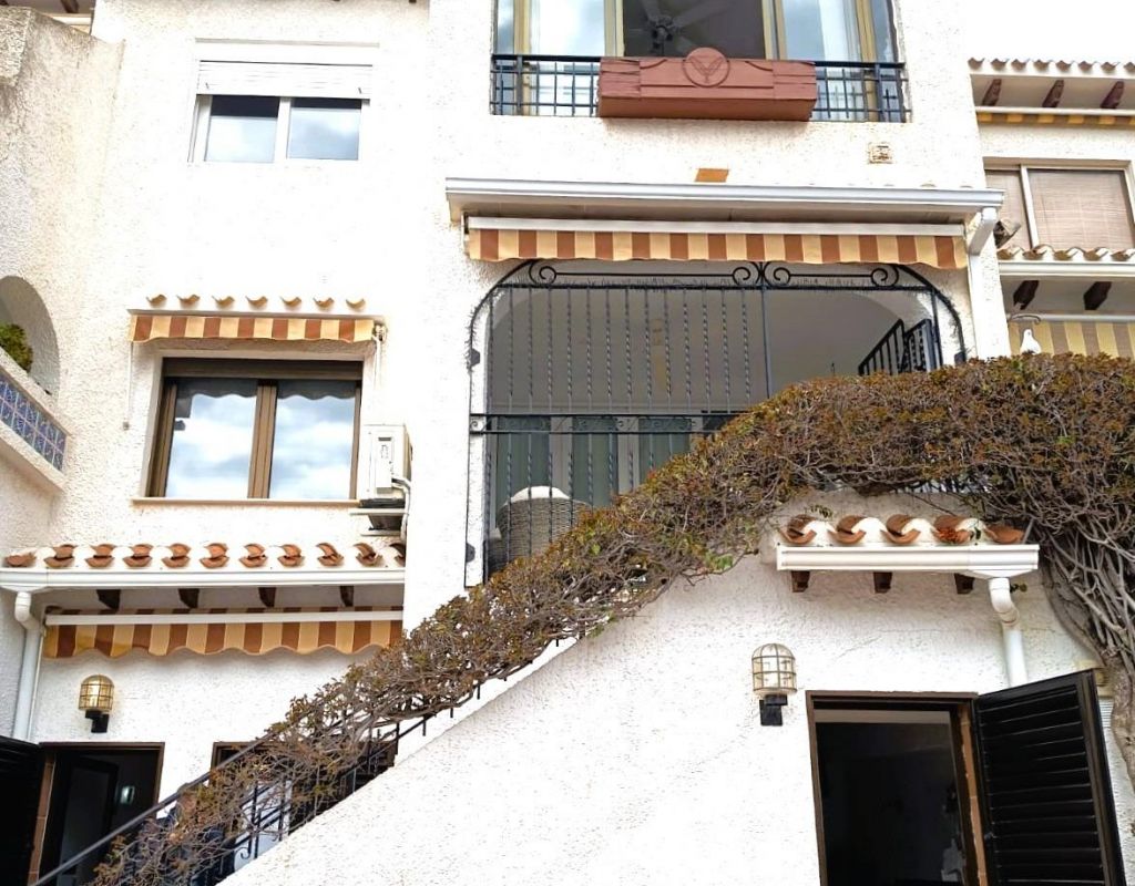Beautifully refurbished south-facing duplex townhouse located on a residential cul-de-sac in Cabo Roig, within walking distance of the sea.. . This spacious property has a floor area of approximately 100 m2 and a private garden of approximately 50 m2 with a barbecue and oven, ideal for enjoying the outdoors all year round. It is part of a gated community with parking spaces and landscaped areas.. . One of its most interesting features is its layout on two floors with separate entrances and spaces that allow them to be used independently. By adding a kitchen on the upper floor, it could easily be converted into two separate homes, making it a very attractive investment option: rent out one part and use the other for living or holidays. . . It has a total of 4 bedrooms and 3 bathrooms. Layout:. . Ground floor: kitchen open to a spacious living-dining room with built-in cupboard and storage room, 1 bedroom and 1 full bathroom with shower.. . Upper floor: glazed terrace with glass curtains and unobstructed views, living-dining room with fireplace and air conditioning, 3 double bedrooms with fitted wardrobes and 2 full bathrooms with shower.. . Although the community does not have a swimming pool, there is a swimming pool a few metres away which can be accessed by subscription.. . A versatile, bright, spacious and well-located property, ideal as an investment, a permanent residence or to enjoy your holidays by the sea.