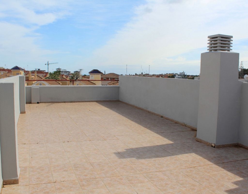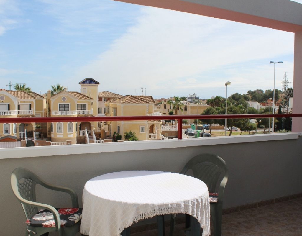 Situated in the highly popular area of El Galán, close to Villamartín in the Costa Blanca South, this penthouse apartment presents an excellent opportunity as a holiday home, permanent residence, or rental investment. With a valid tourist licence already in place, the property is perfectly suited for those looking to generate rental income. The apartment offers 63 m² of comfortable living space and is sold fully furnished. The new owner can move in or begin renting immediately. Inside, the property features two good-sized bedrooms, a family bathroom, and a bright open-plan living / dining area with an American-style kitchen. The apartment enjoys abundant natural light throughout the day, creating a warm and welcoming atmosphere. A real highlight of this penthouse is its generous outdoor space - a 14 m² front terrace and a 16 m² rear terrace, plus an impressive 55 m² private rooftop solarium offering the perfect setting for sunbathing, relaxing, dining, or entertaining. Running costs are very low, with council tax only €250 per year and community fees of just €360 per year. The apartment is near to a wide variety of restaurants, bars, shops, and a supermarket whilst a bus stop directly outside the property provides convenient transport connections throughout the area including to the beach. Golf enthusiasts will appreciate having four excellent courses nearby — Villamartín, Campoamor, Las Ramblas, and Las Colinas — while the beautiful beaches of Orihuela Costa and Zenia Boulevard shopping centre are just a 10-minute drive away. Murcia and Alicante airports are both reachable within 45 minutes, making this property perfectly positioned for holidays, year-round living, or rentals. Please note that this property does not have a communal swimming pool, but is in an ideal location for golf rentals due to the four courses all within 5-10mins drive.