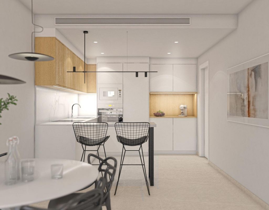 Modern Apartments with comunal Pool Near the Beach in San Pedro del Pinatar Exclusive New Build Apartments on the Costa Calida Discover this boutique development of 12 modern apartments designed to offer comfort, functionality and quality of life in one of the most attractive areas of the Costa Calida. Located close to Lo Pagan in San Pedro del Pinatar, this residential complex combines a residential environment with easy access to the coast and all essential services. The area is well known for its relaxed Mediterranean lifestyle, natural beaches and famous mud baths. With shops, restaurants, supermarkets and leisure facilities nearby, this location is ideal for both permanent living and holiday stays. Prime Location Close to Beaches and Promenade The development is situated just 3 km from the beaches of La Torre and the popular Lo Pagan promenade, where you can enjoy seaside walks, beach bars and water sports activities. The Mar Menor offers calm and warm waters, perfect for families and outdoor enthusiasts. Contemporary Design with Flexible Layouts The project offers 1 and 2 bedroom apartments in different configurations to suit various lifestyles. Ground floor properties feature large private terraces, parking within the plot and direct access to the communal pool. Top floor apartments include private rooftop solariums, ideal for enjoying the sun and outdoor living. All homes are designed with open plan living spaces, combining kitchen, dining and lounge areas with direct access to terraces. Bedrooms include built in wardrobes, and the master bedroom benefits from an en suite bathroom. High Quality Finishes and Energy Efficiency These apartments are built with a focus on comfort and sustainability. Features include pre installation for ducted air conditioning, pre installation for natural gas central heating and an aerothermal system for hot water. Bathrooms are fully equipped with furniture, mirrors and shower screens, while electric shutters are installed in the living room. Additional technical lighting and ventilation systems ensure a comfortable indoor environment throughout the year. Communal Areas Designed for Relaxation The residential complex offers a beautifully designed communal area with a swimming pool featuring a beach style entrance, perfect for relaxing and cooling off. A dedicated chill out zone with sun loungers and shaded areas creates a welcoming space to socialize and unwind. Additional facilities include outdoor parking with pre installation for electric vehicle charging and a communal bicycle storage area, promoting a sustainable and active lifestyle. Excellent Connectivity and Nearby Amenities This development is ideally located with easy access to key points of interest. Murcia International Airport is approximately 35 km away and Alicante Airport around 75 km. Several golf courses are within 10 to 15 km, and nearby marinas offer excellent nautical facilities. Ideal Investment or Holiday Home Opportunity These apartments offer an excellent opportunity to enjoy modern coastal living in a well connected and sought after area. Contact us today for more information or to arrange a viewing and secure your new apartment near the sea in San Pedro del Pinatar.
